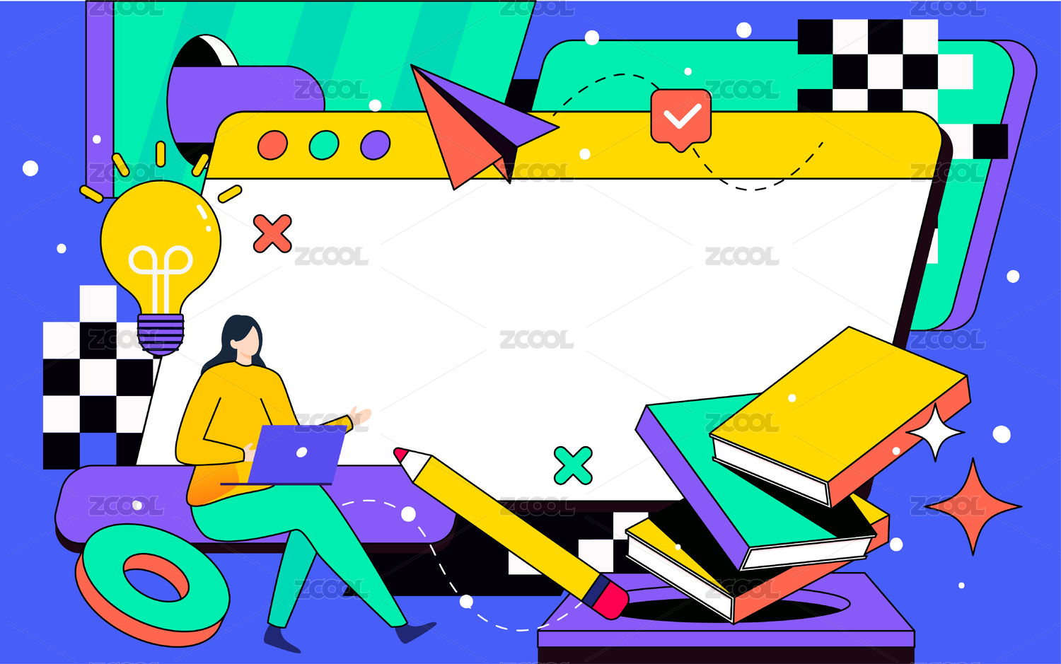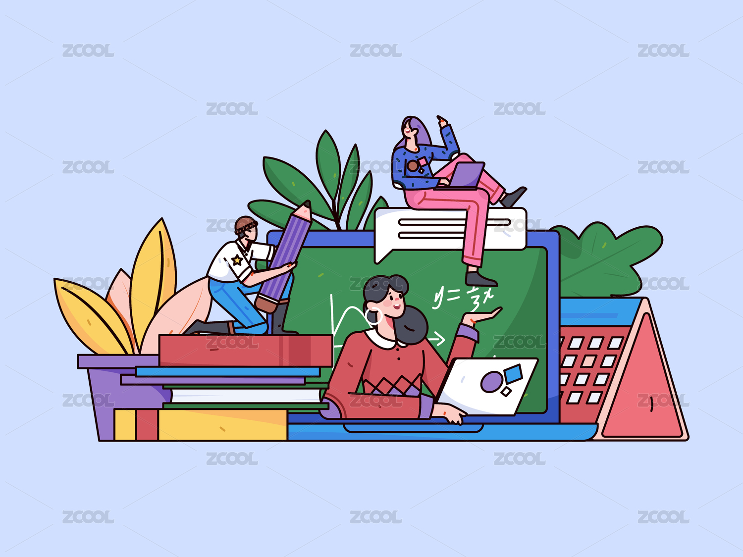 在线教育人物学习矢量插画