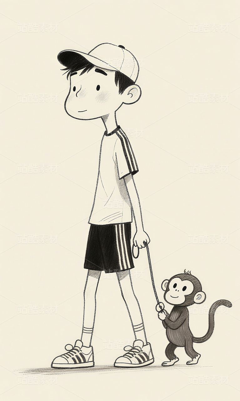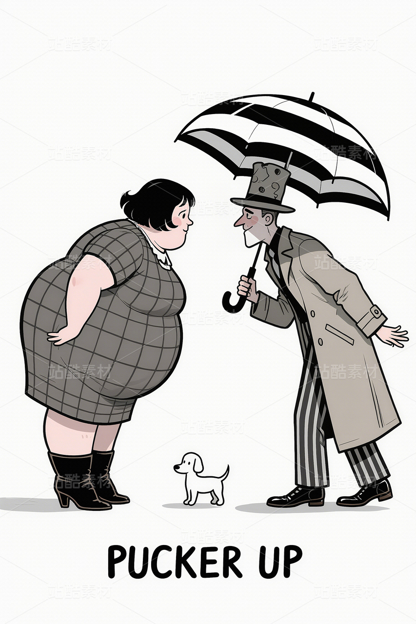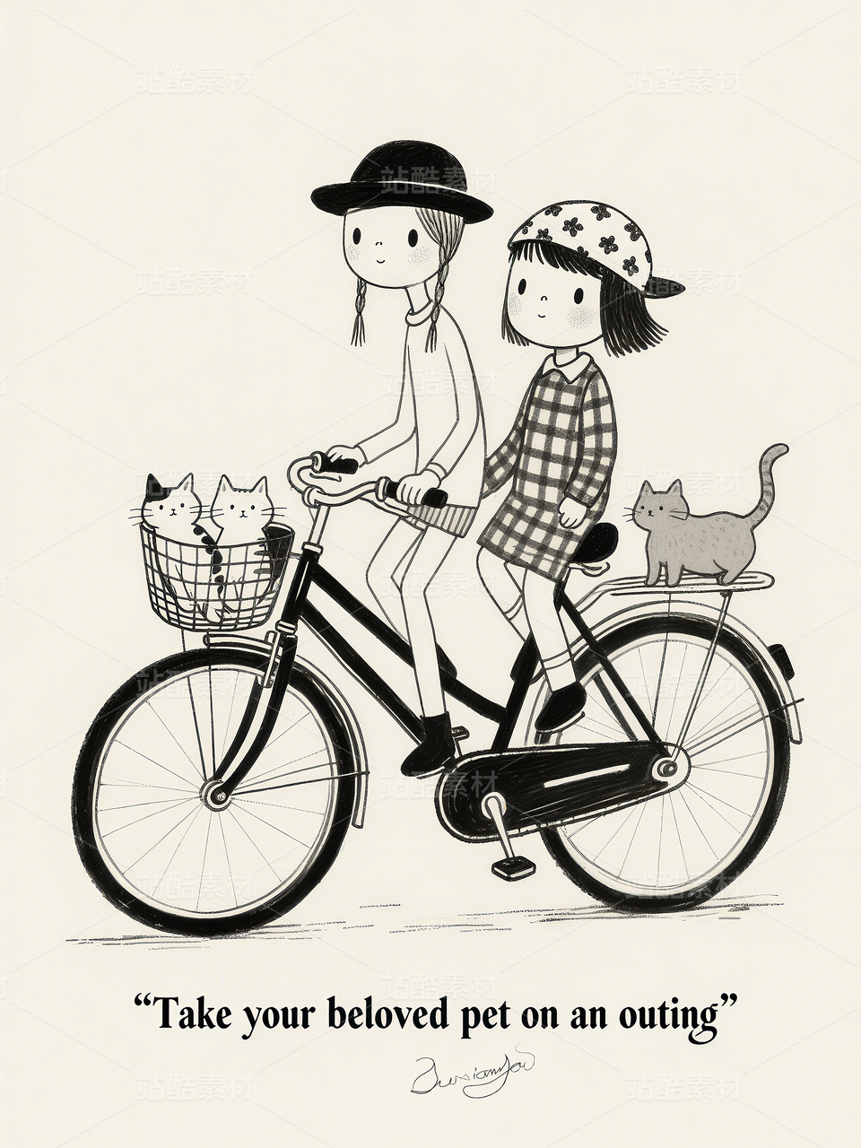 小清新漫画漫画可爱女生人物素描漫画黑白画艺术装饰画