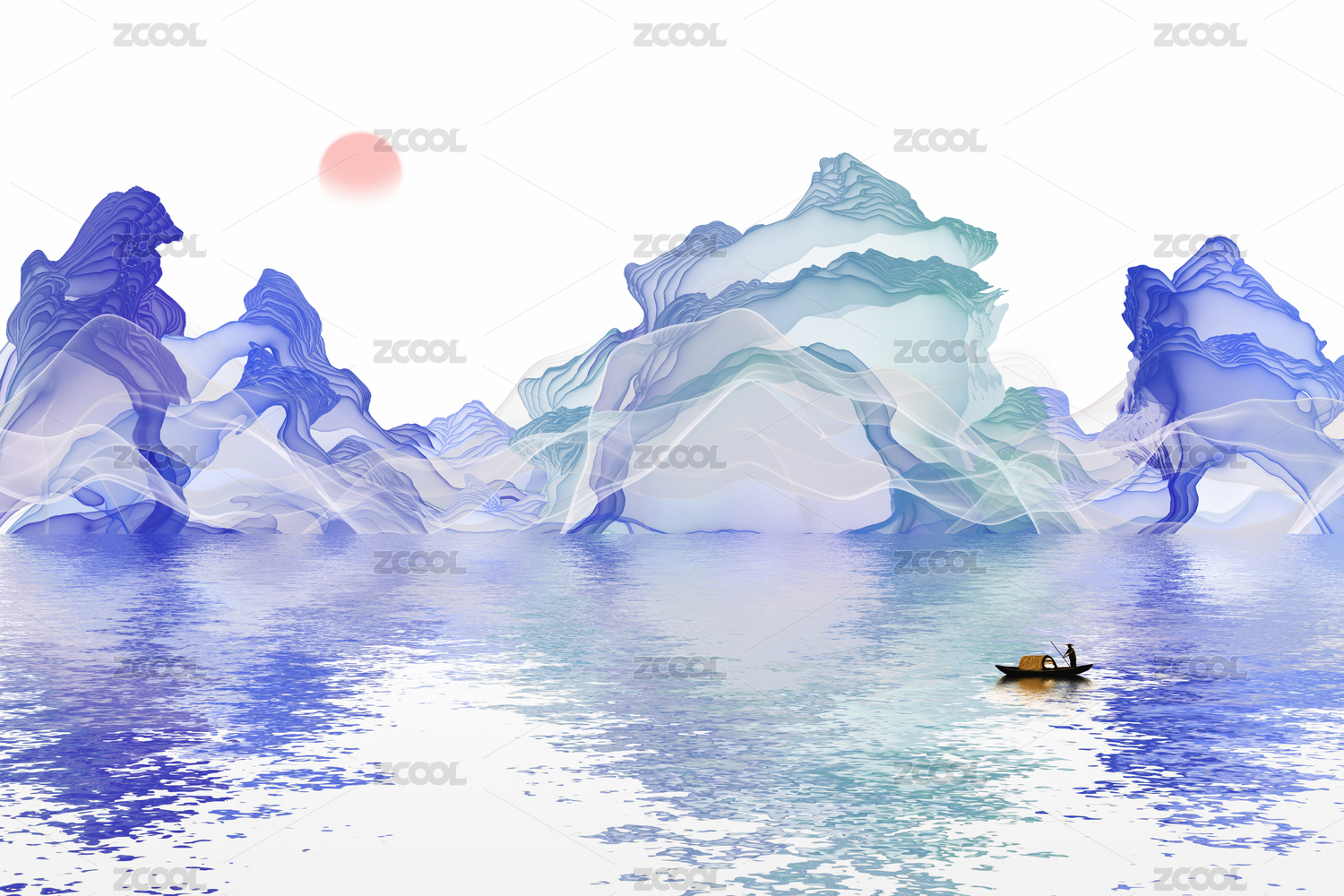 抽象水墨艺术装饰画意境山水炫彩线条