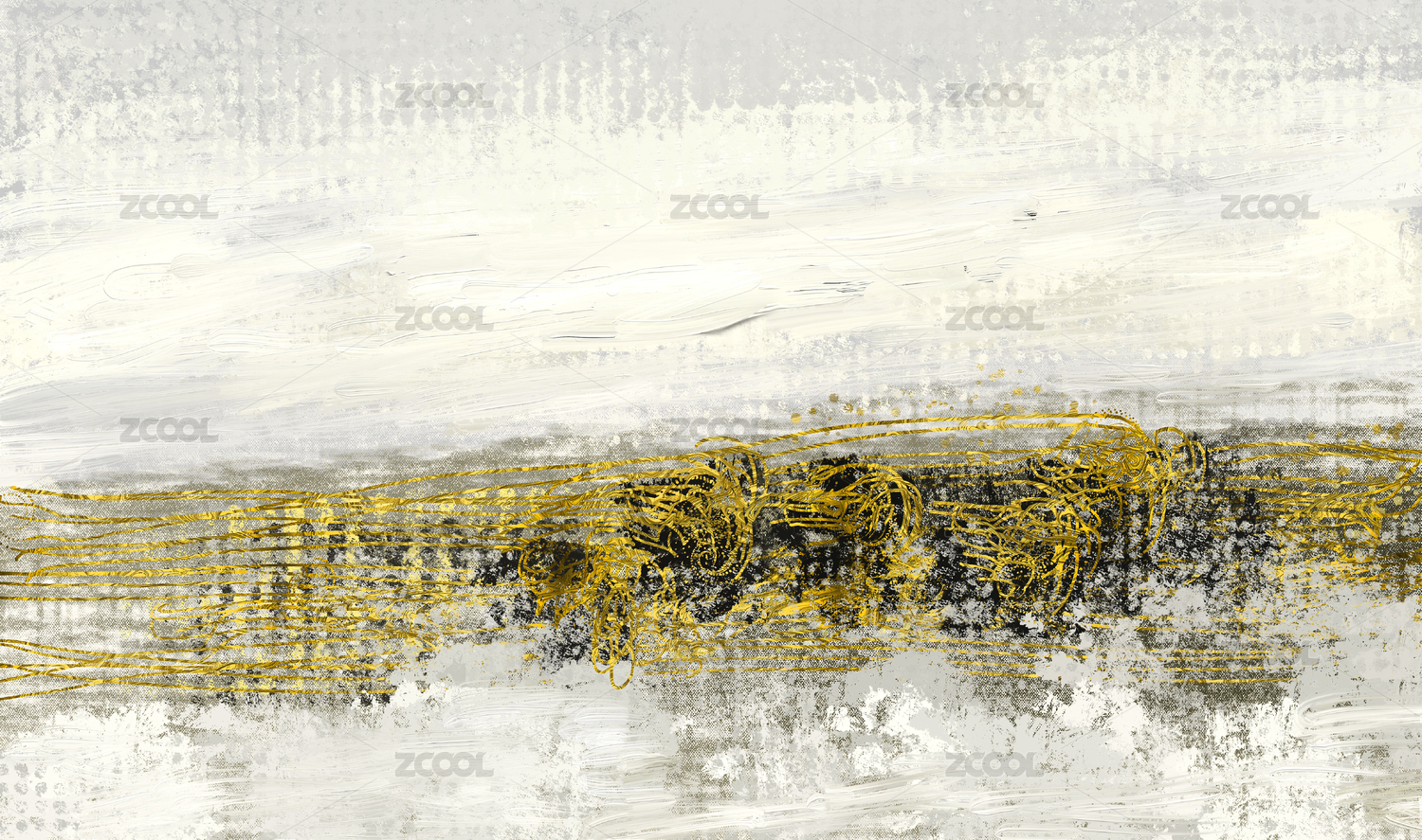 手绘轻奢抽象油画金色线条艺术装饰画