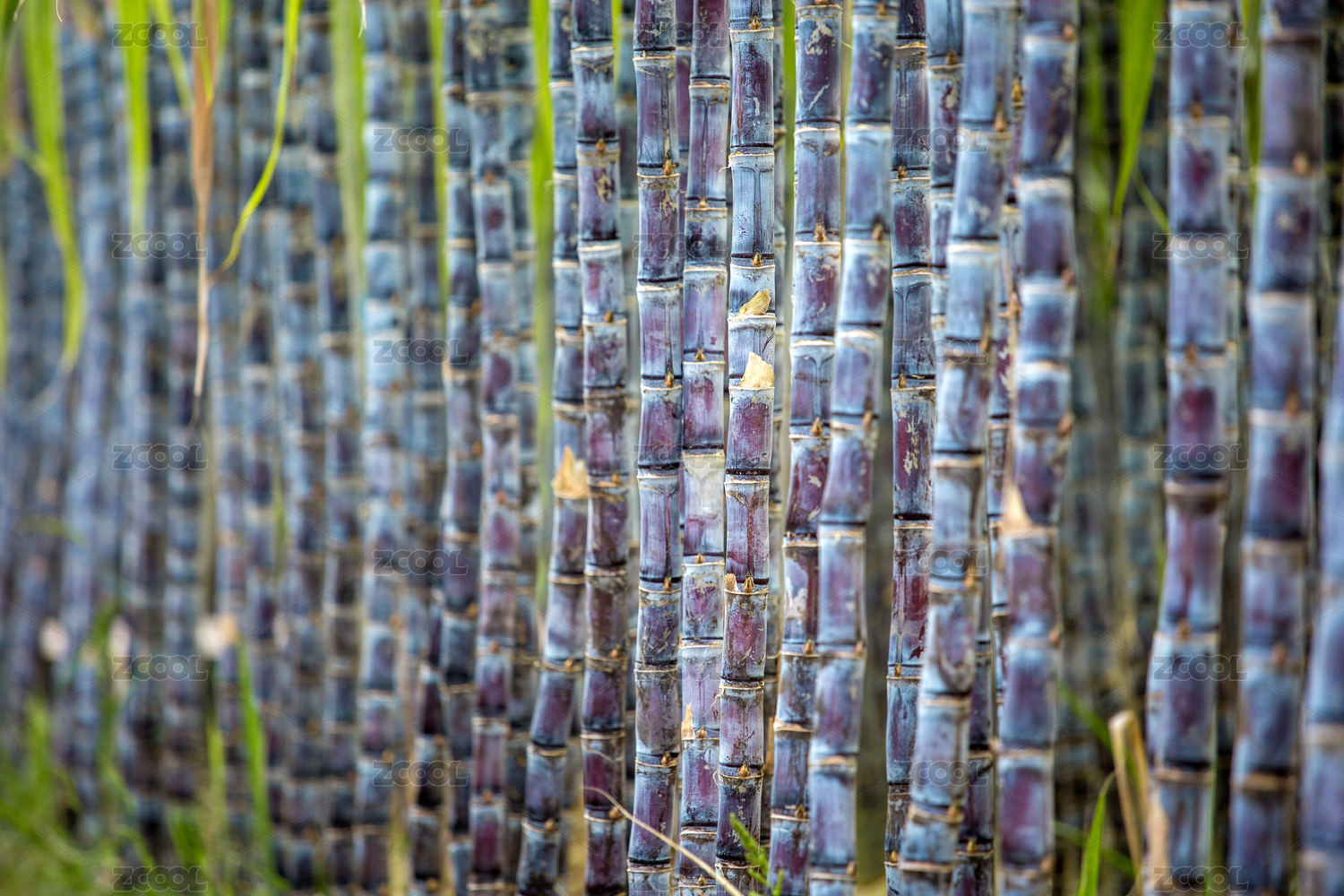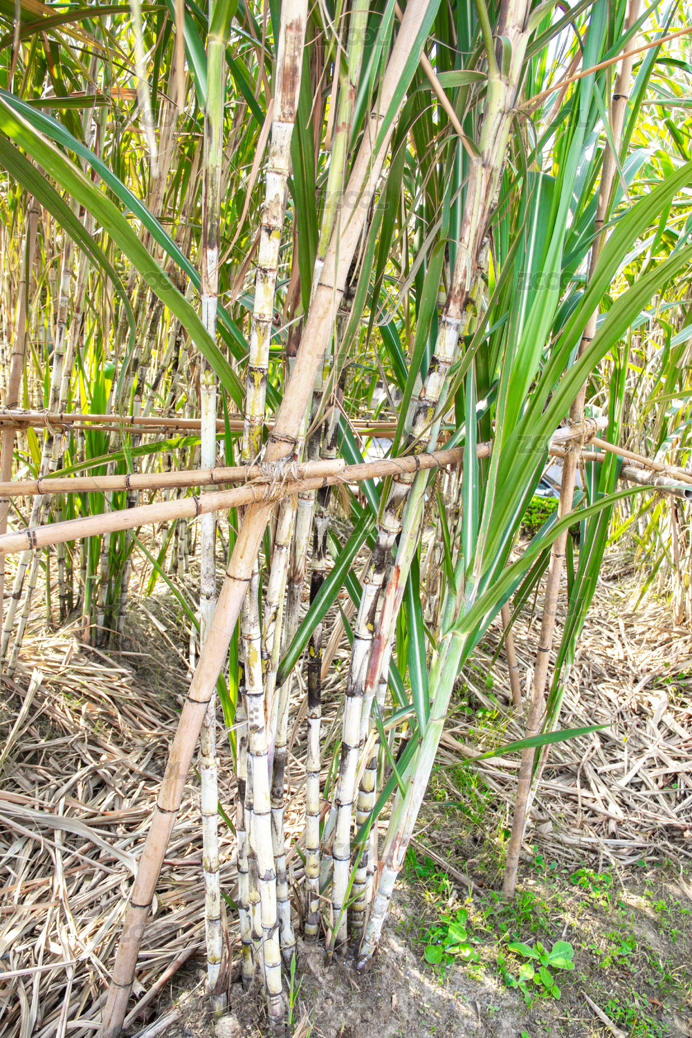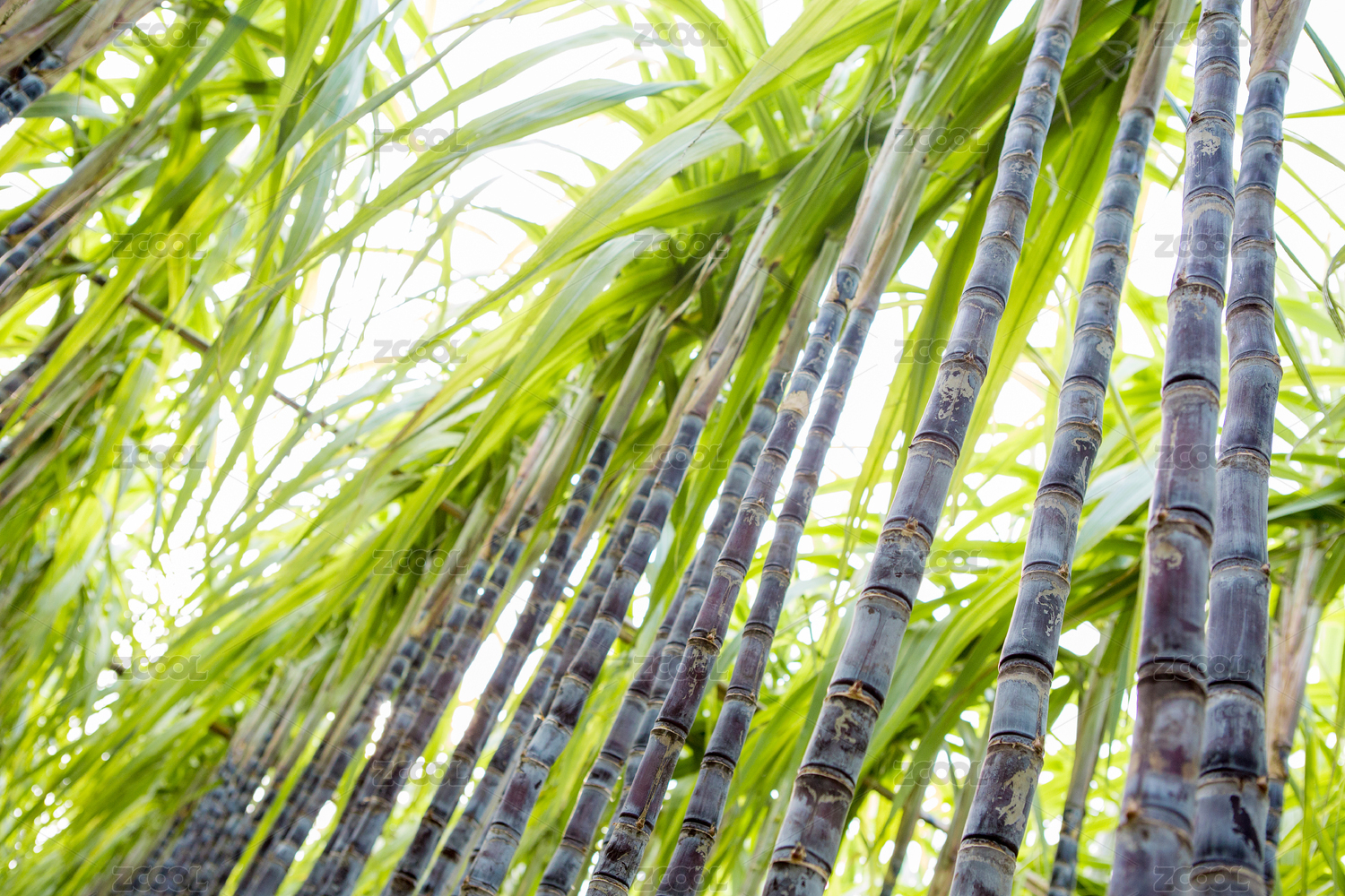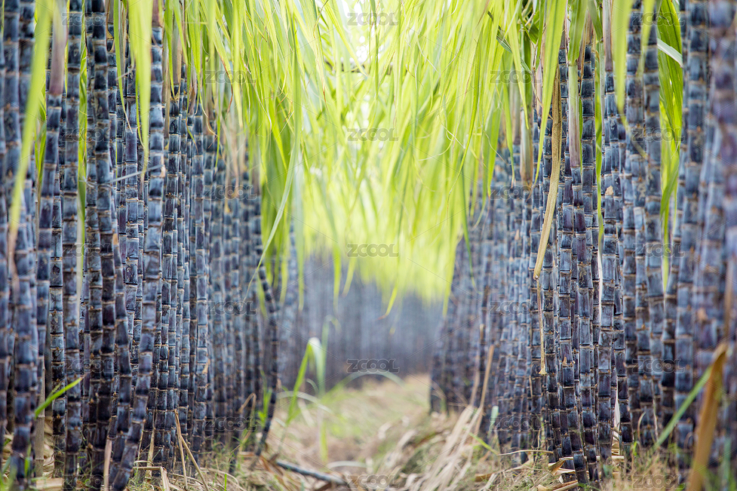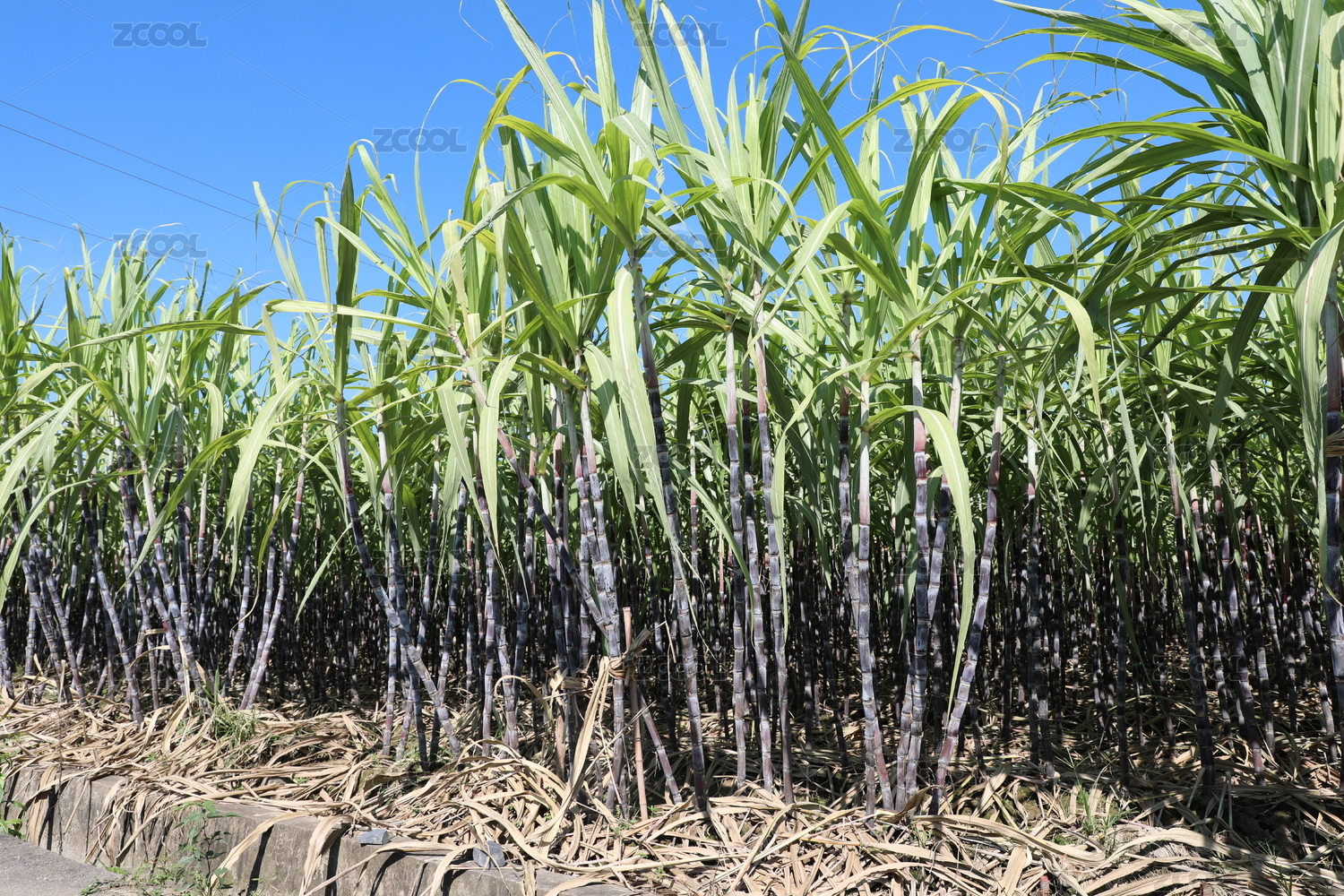 蓝天下茂盛绿色甘蔗田生长旺盛
