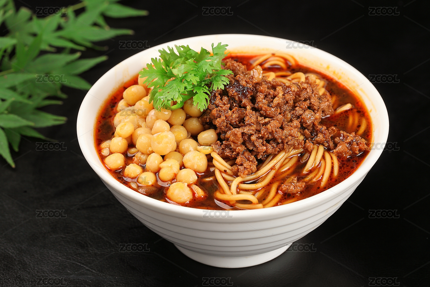大理石背景复古碗里的杂酱面