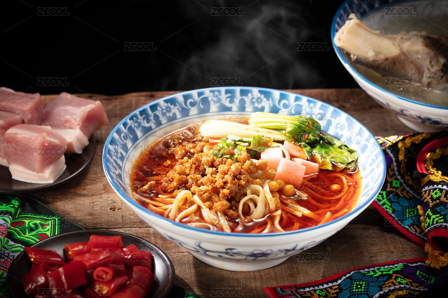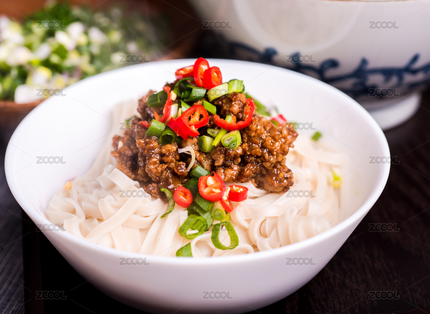 青花瓷大碗里的麻辣杂酱面重庆小面