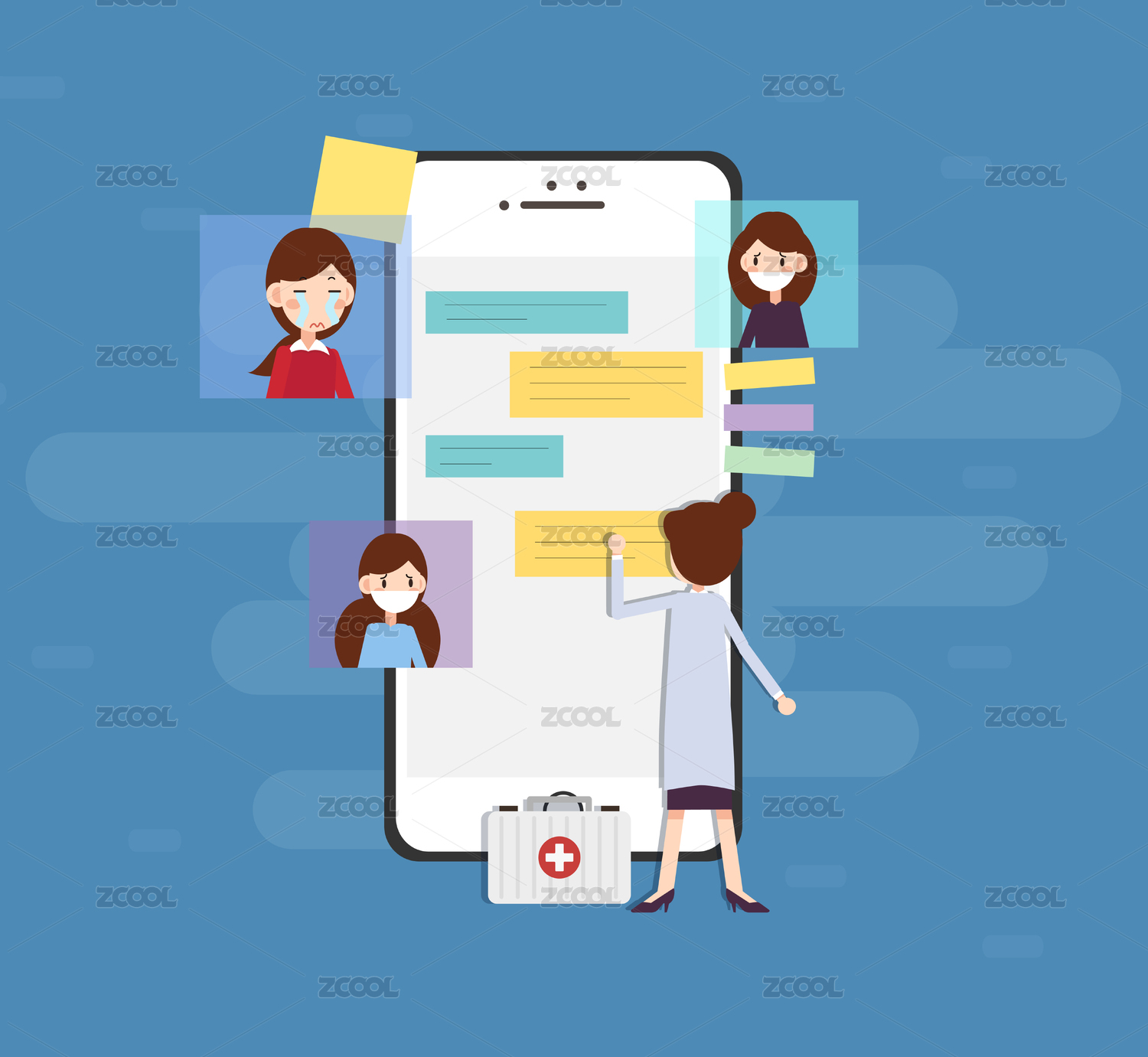 一位女医生在手机前接待患者