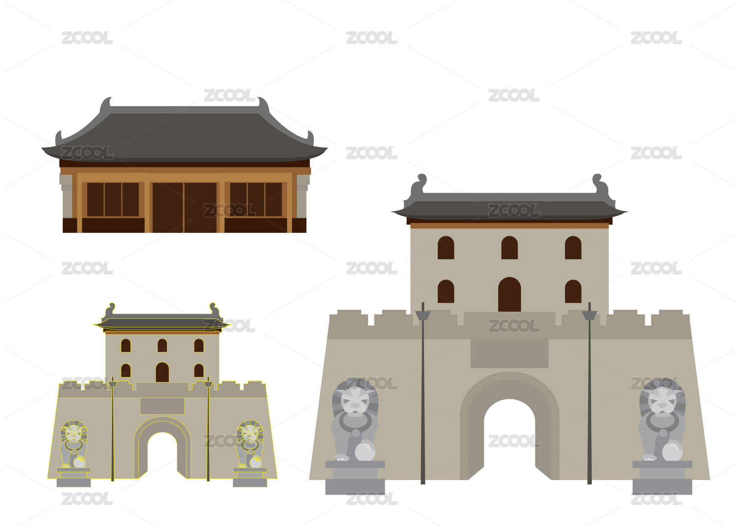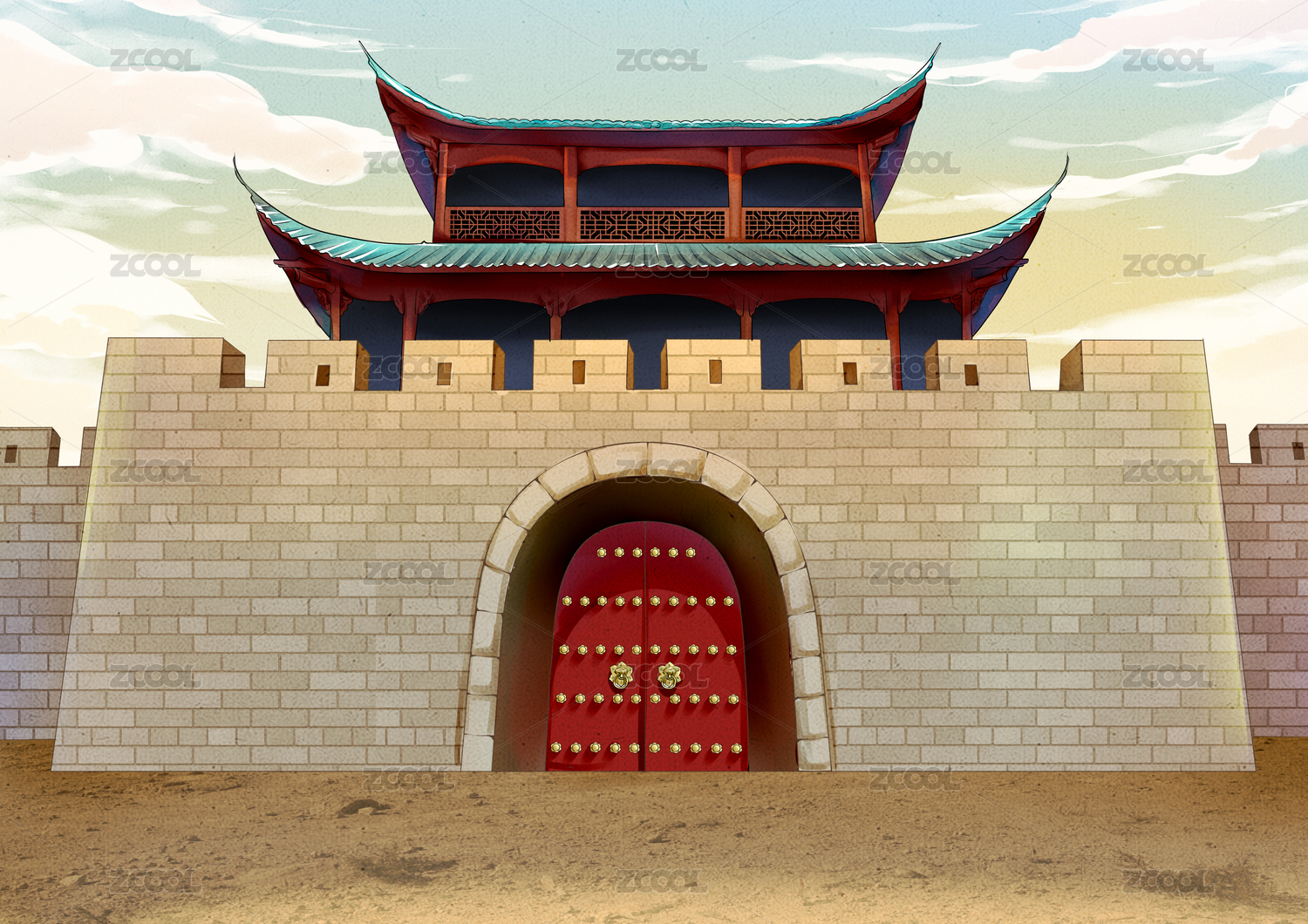山西朔州杀虎口 城门楼 古典建筑矢量素材