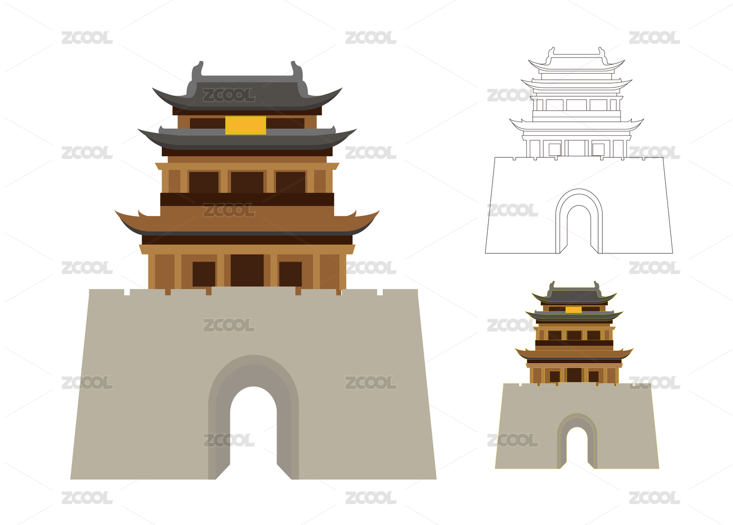 超精细北京故宫城门正阳门箭楼矢量线稿