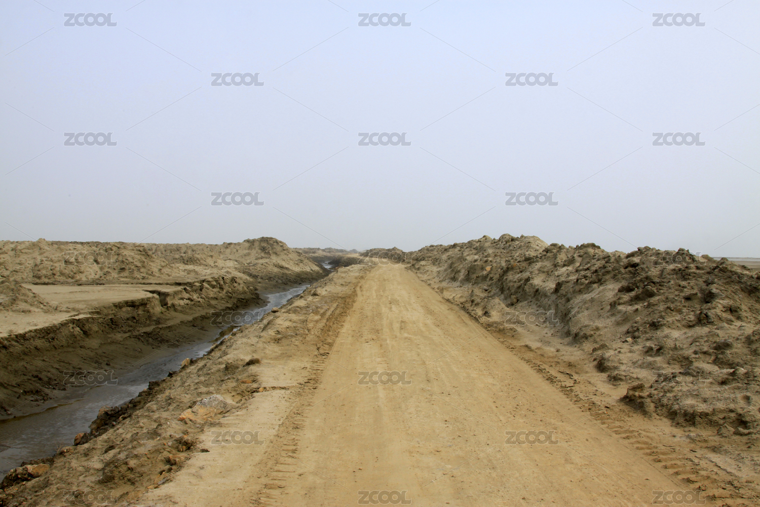 荒漠中的土路与水渠