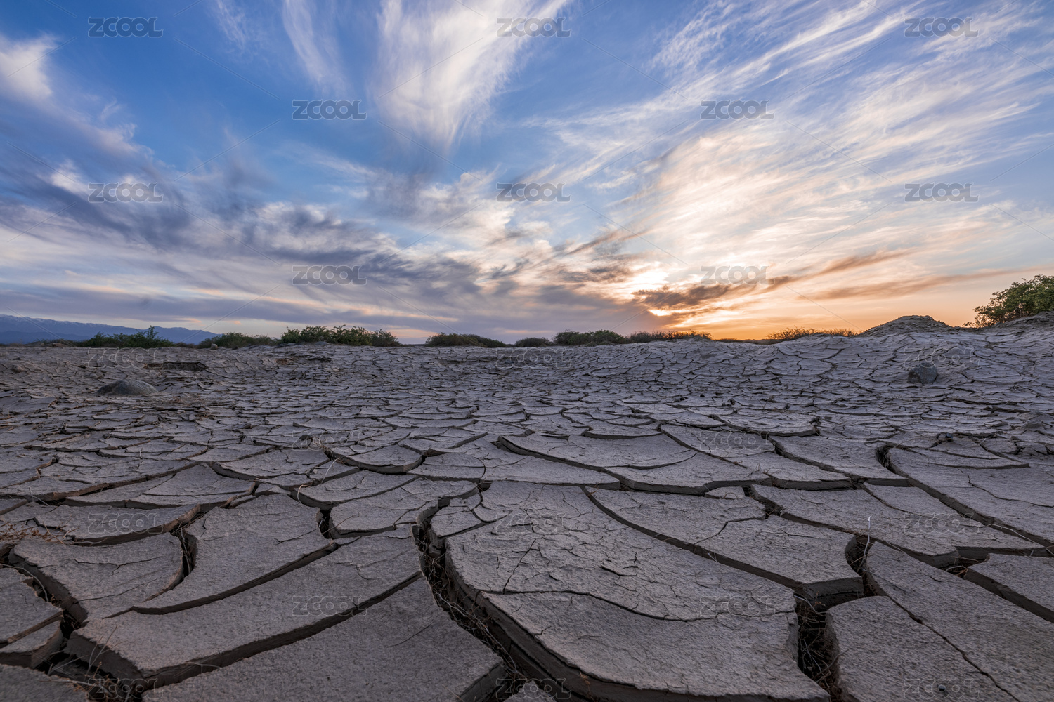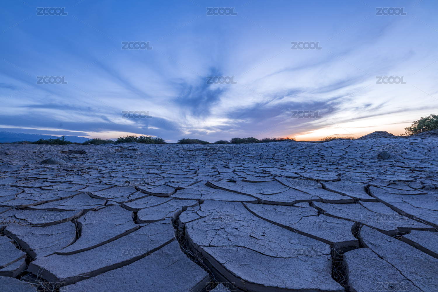 干旱地裂日落晚霞