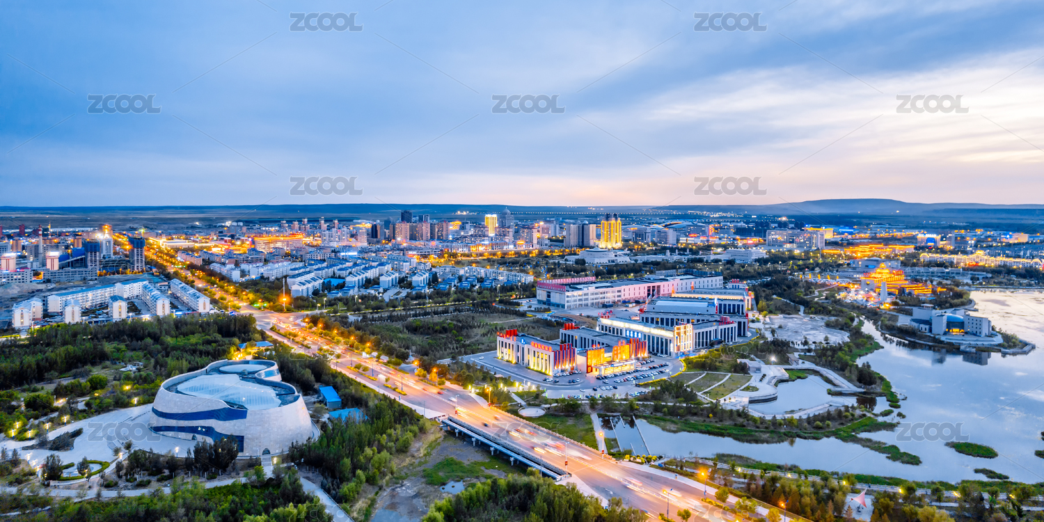 内蒙古锡林郭勒锡林浩特市锡林河天际线夜景