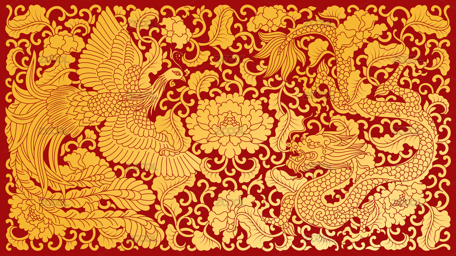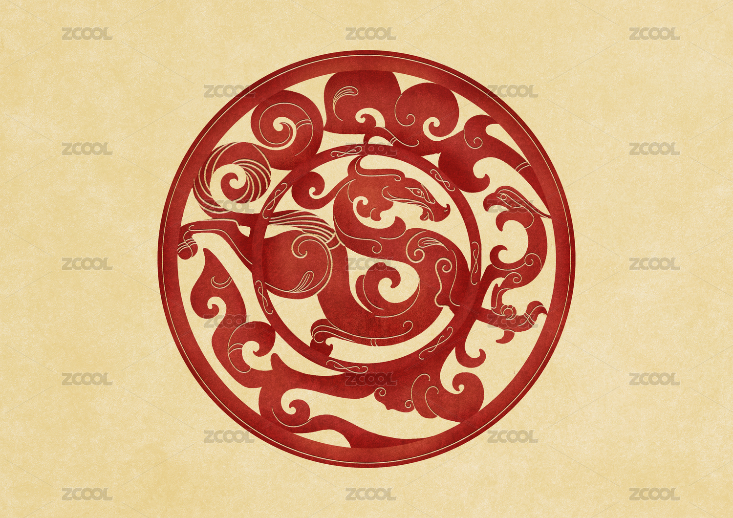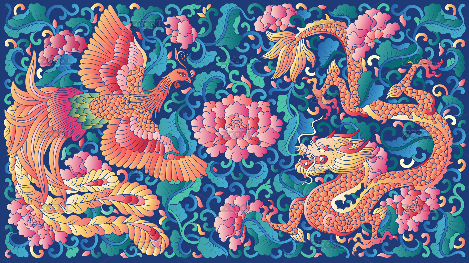 夔龙夔凤龙凤吉祥福寿中国纹样国潮插画