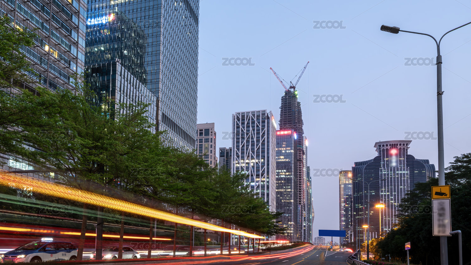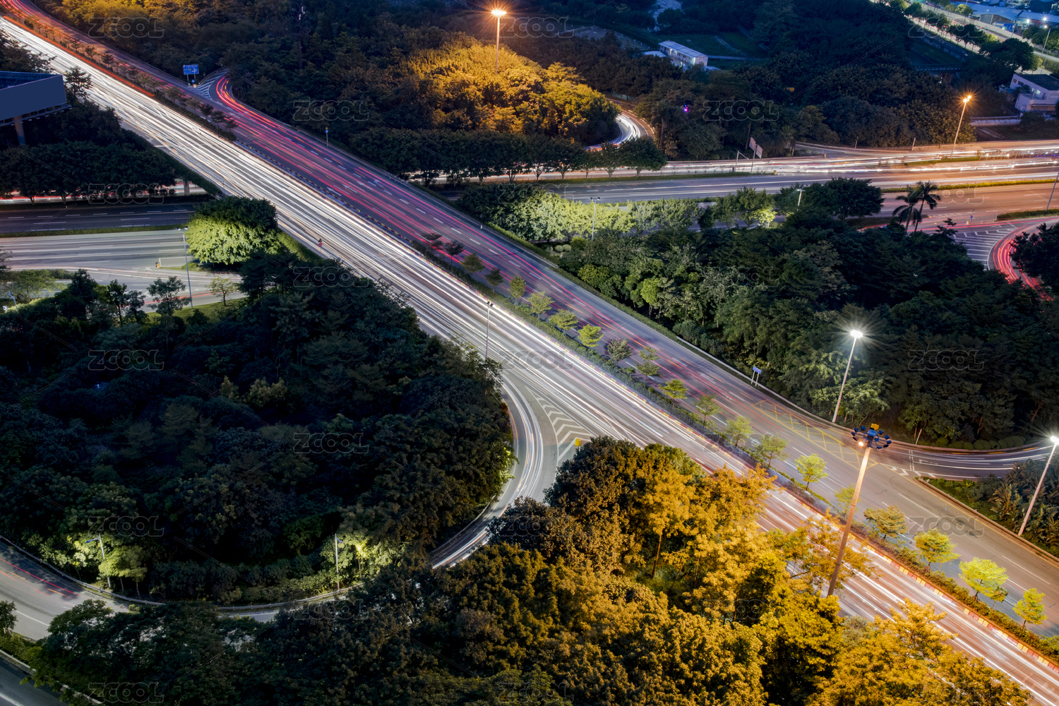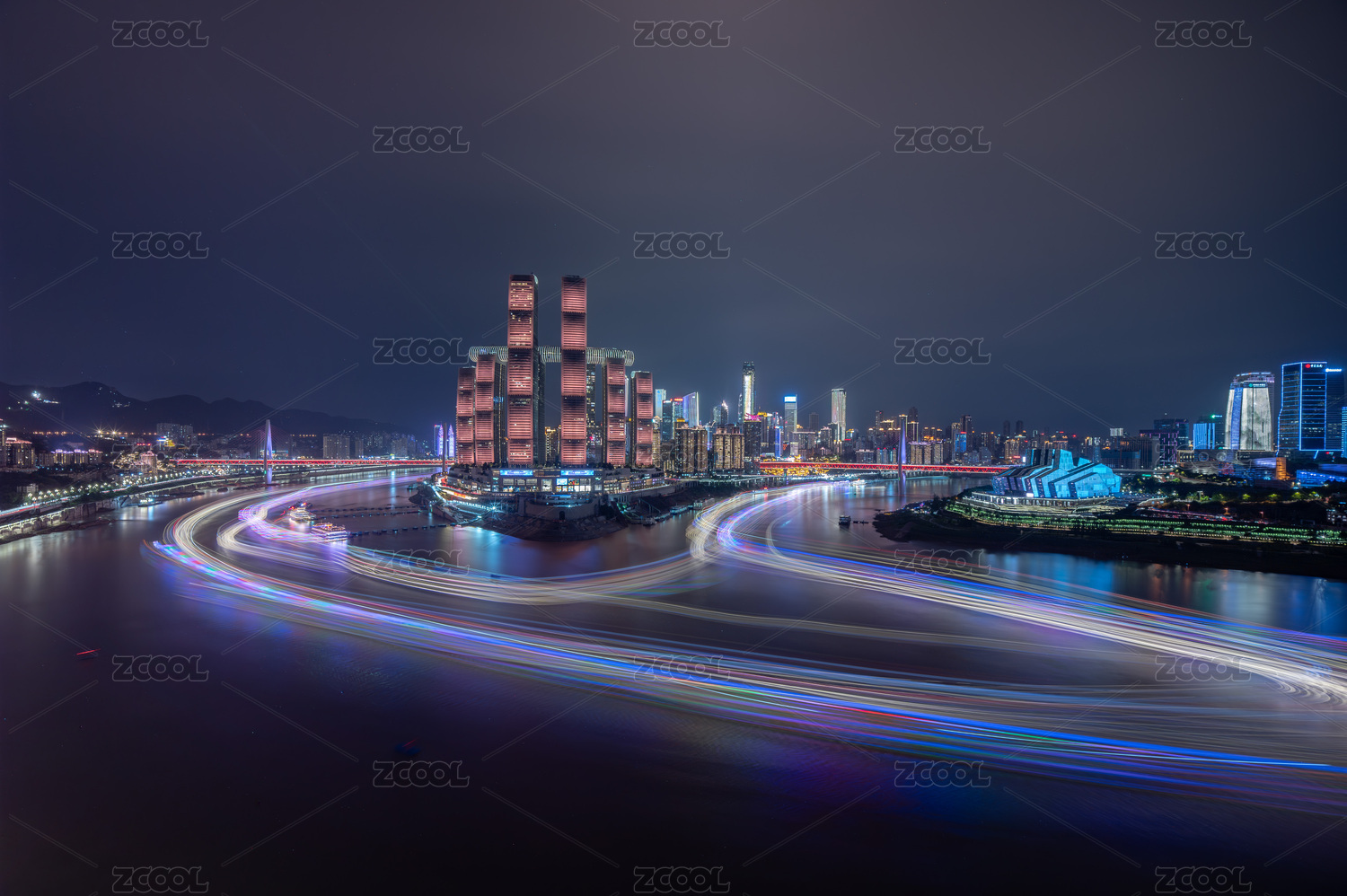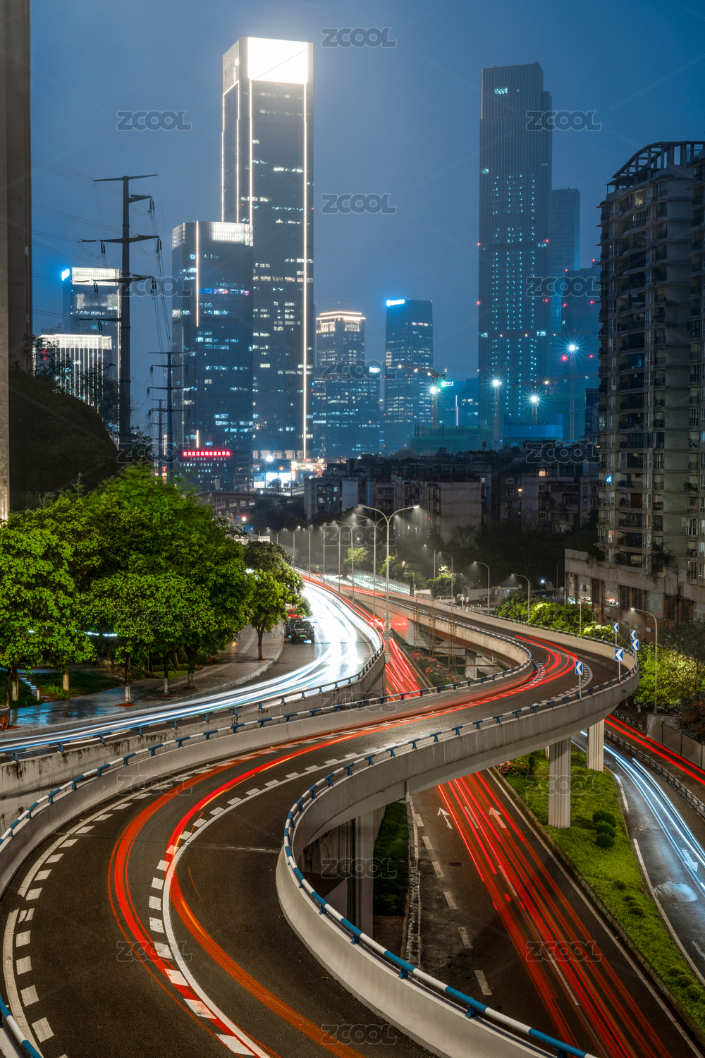 阴天傍晚华灯初上时分的四方坪立交桥光轨