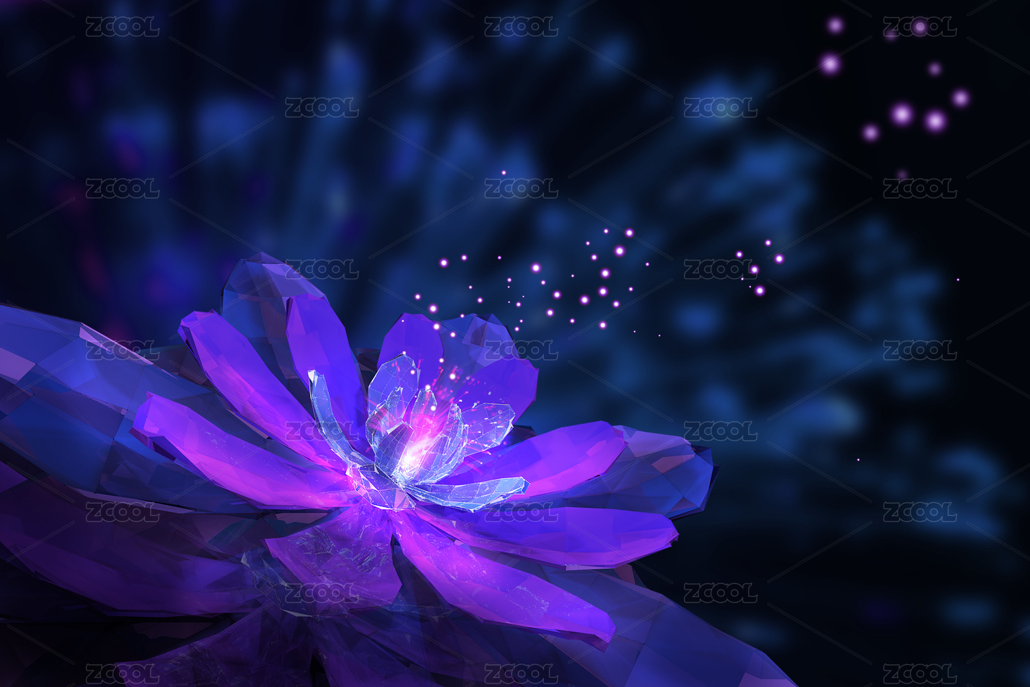 一朵绽放的淡粉鲜花搭配朦胧闪烁蓝色背景