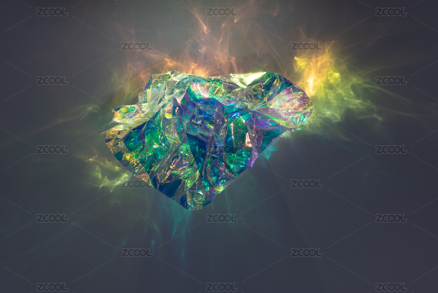 草地上闪烁发光的梦幻黄色宝石水晶微距插画
