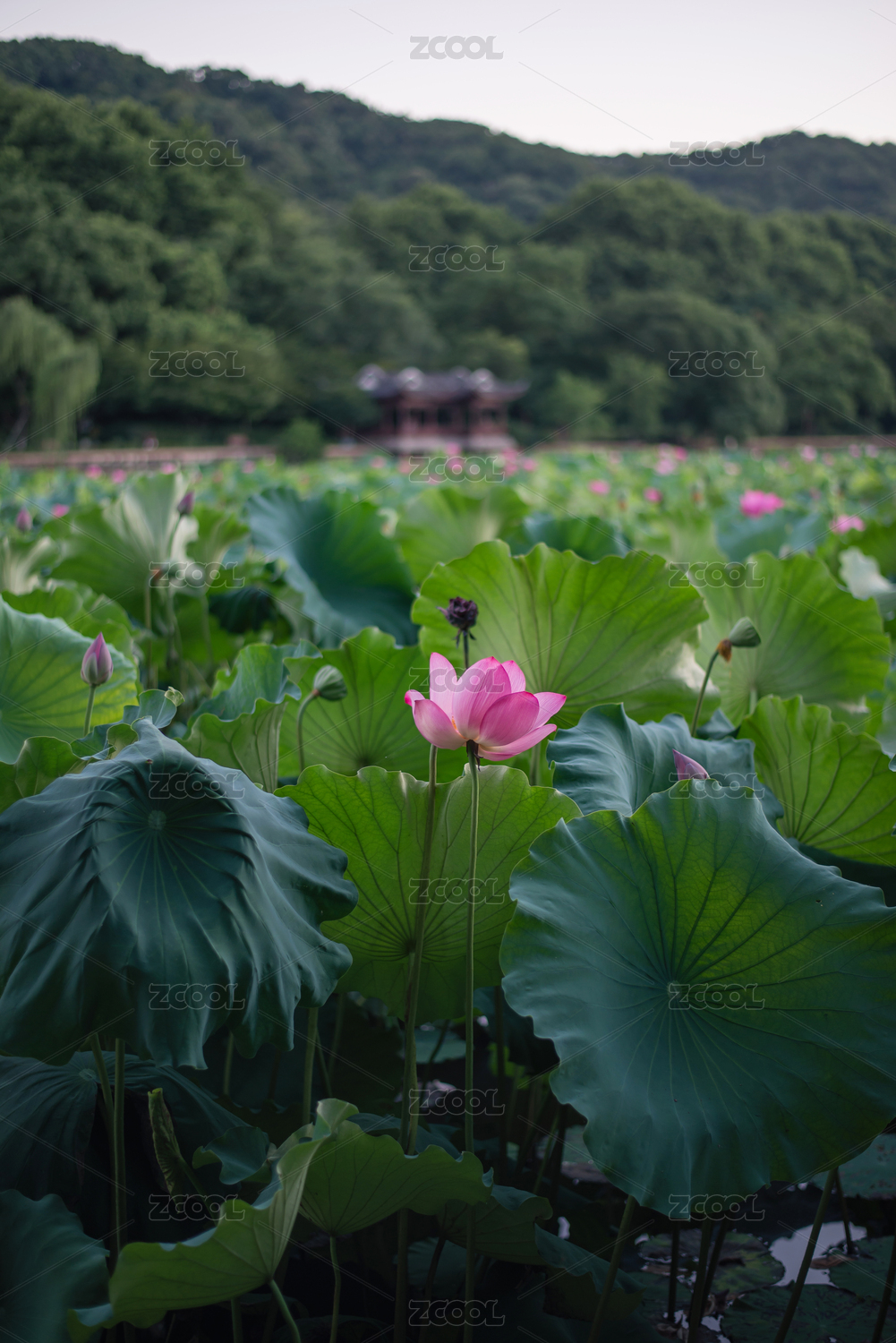 杭州孤山夏天荷花特写