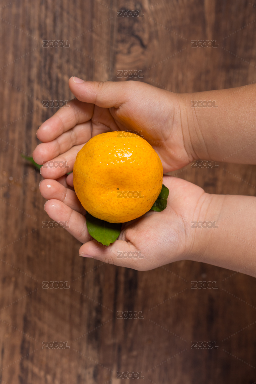 儿童手捧新鲜桔子水果