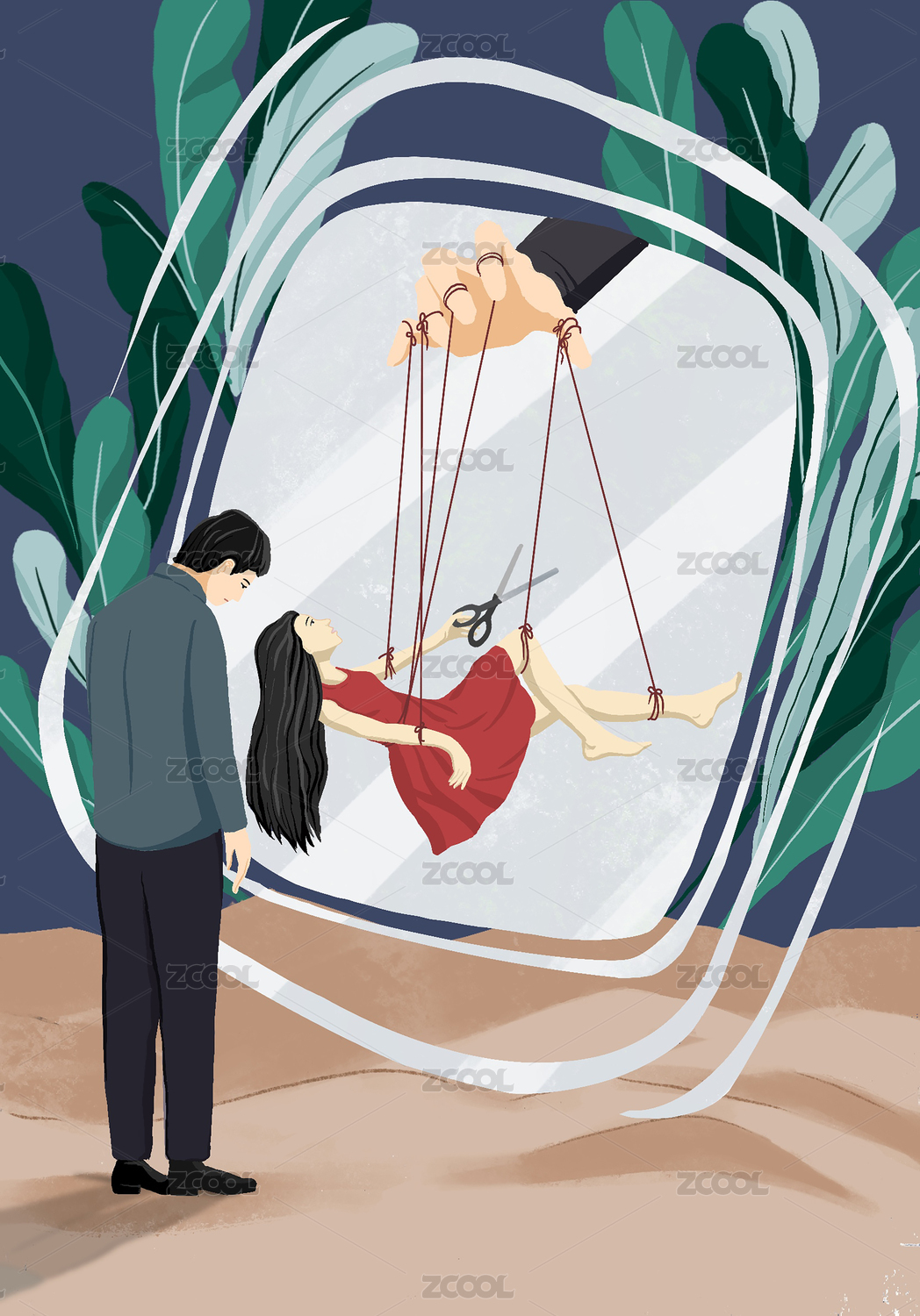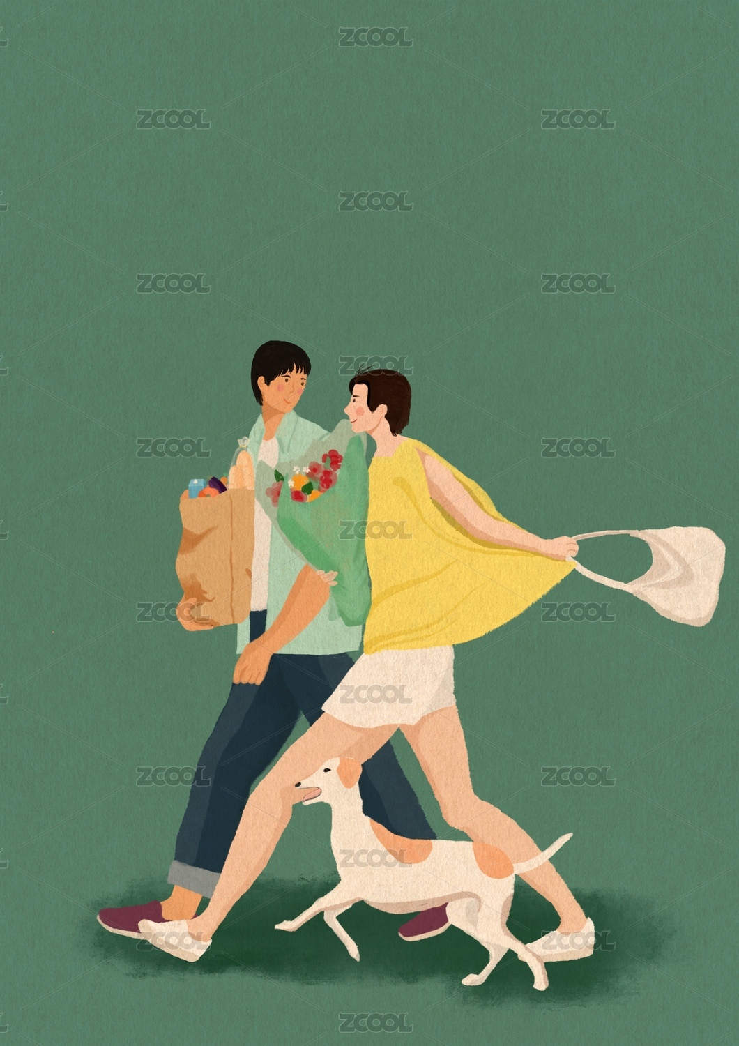 卡通情人节情侣约会浪漫伴侣在一起出游旅行