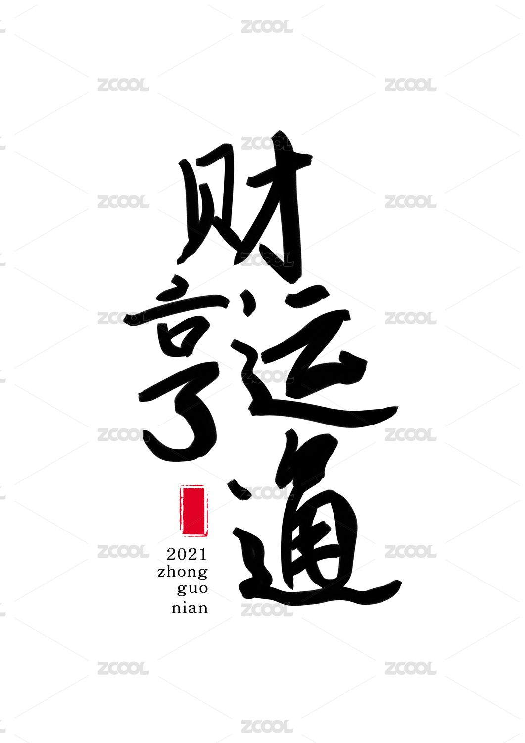 国潮风格创意书法毛笔字海报字体财运亨通