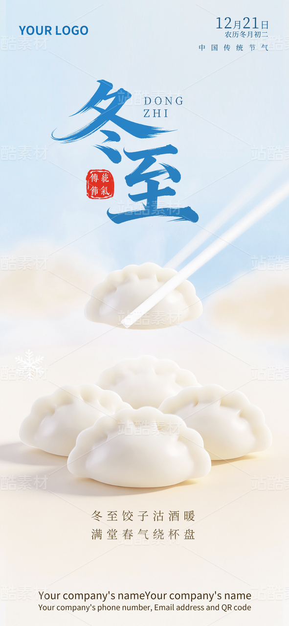 冬至节气清新简约国风饺子团圆海报