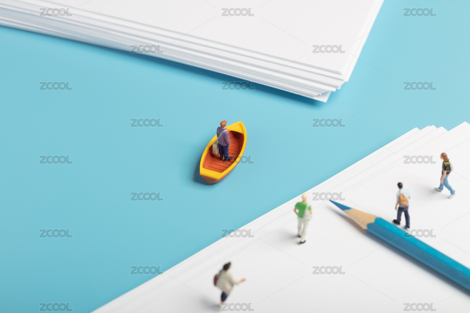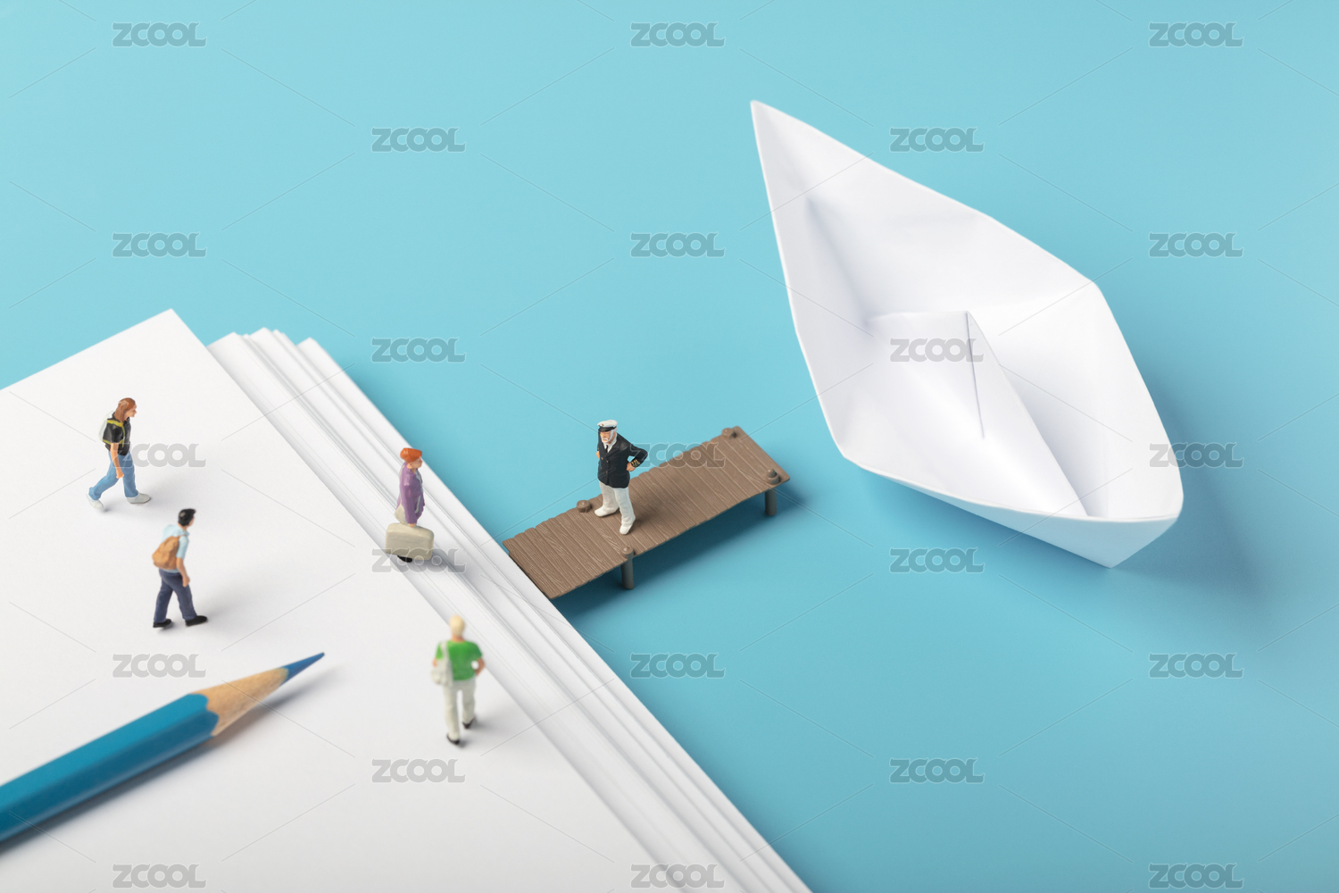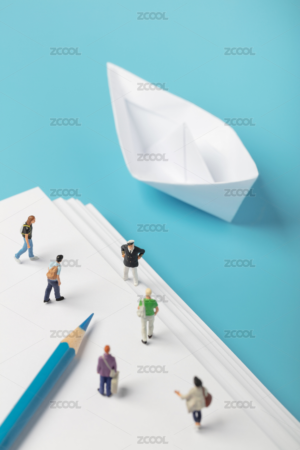 微缩创意教育概念准备上船的人群