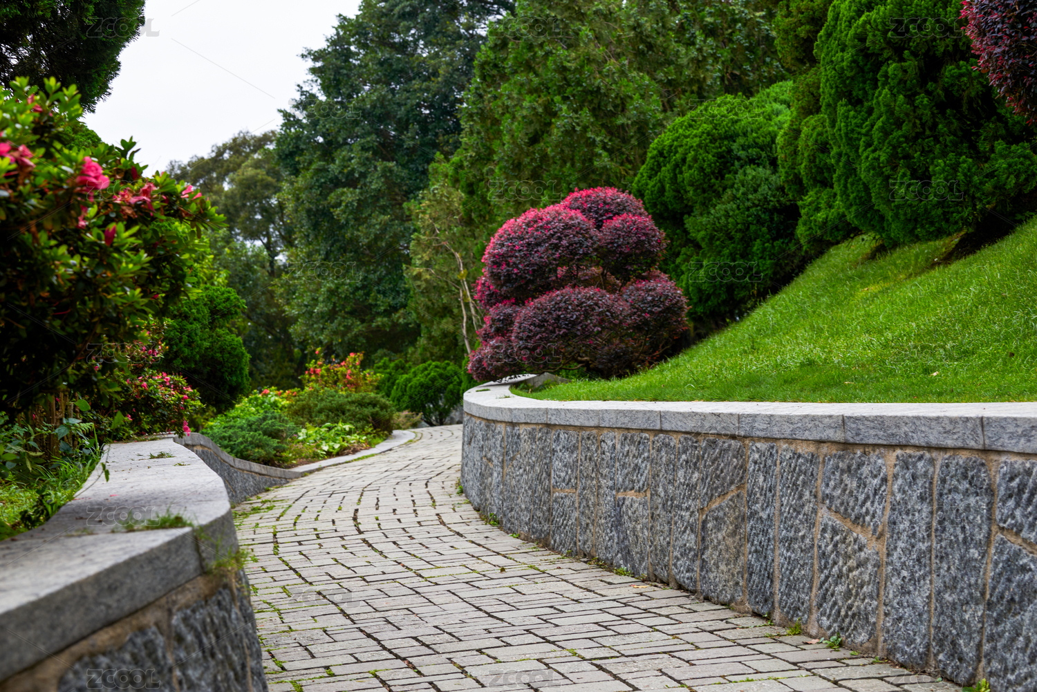 中国香港慈山寺的日式园林休闲步道景观
