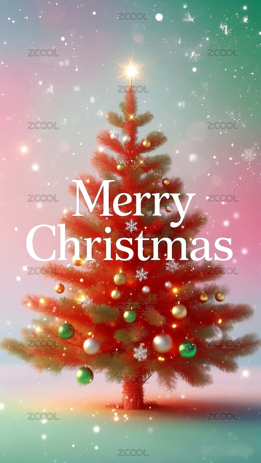 驯鹿弥散风高级圣诞节圣诞树海报复古