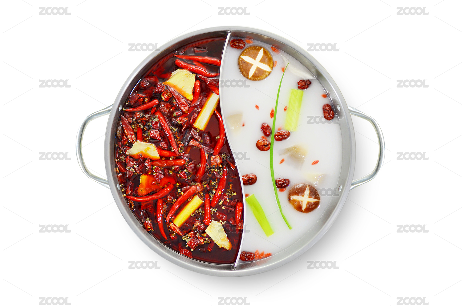 白色背景上摆放的鸳鸯火锅