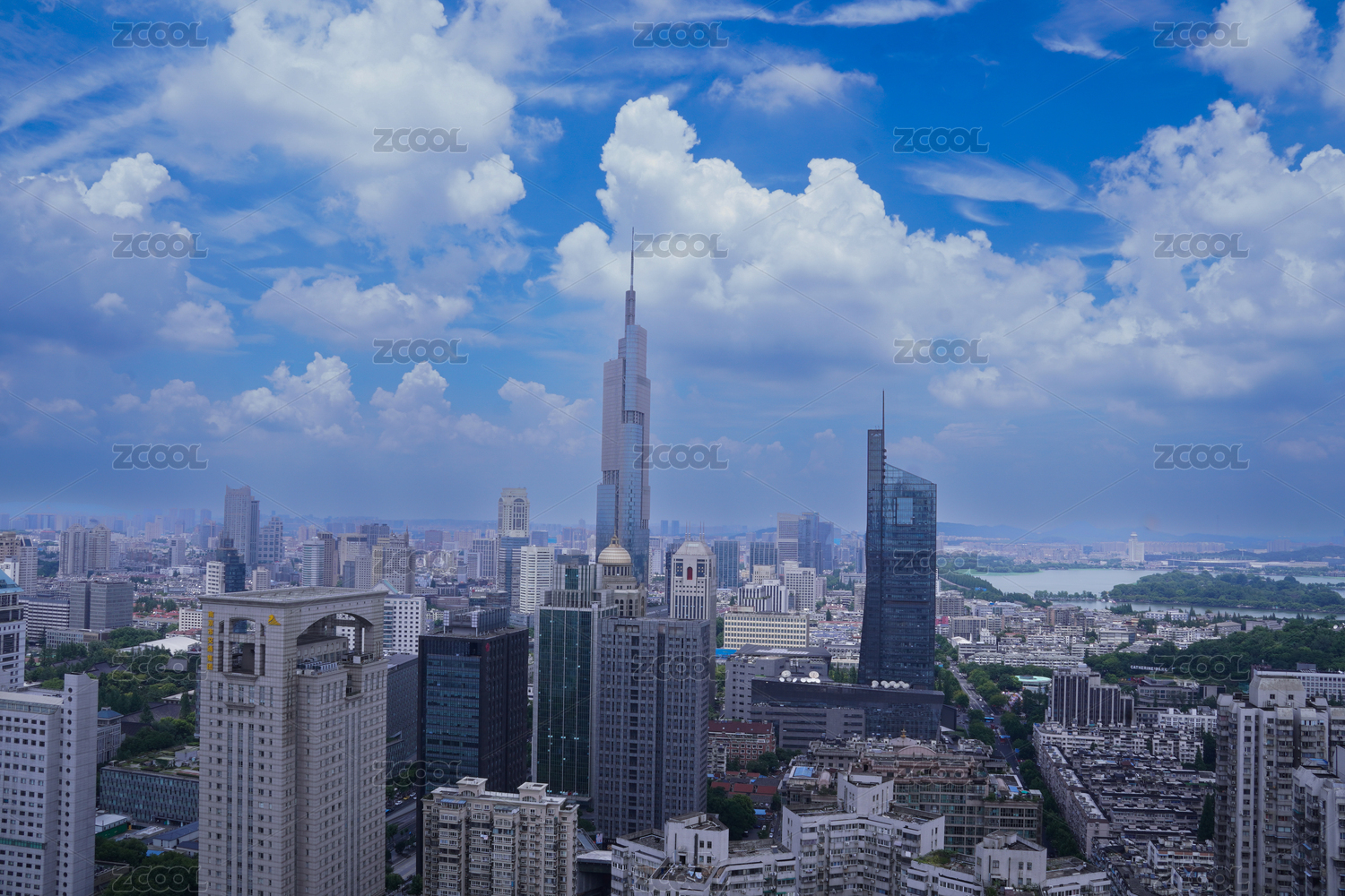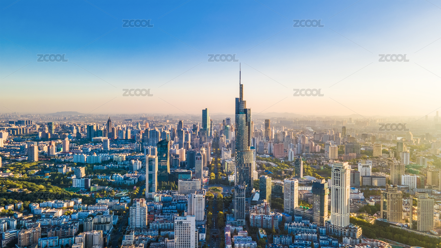 中国江苏南京紫峰大厦和城市天际线黄昏风光