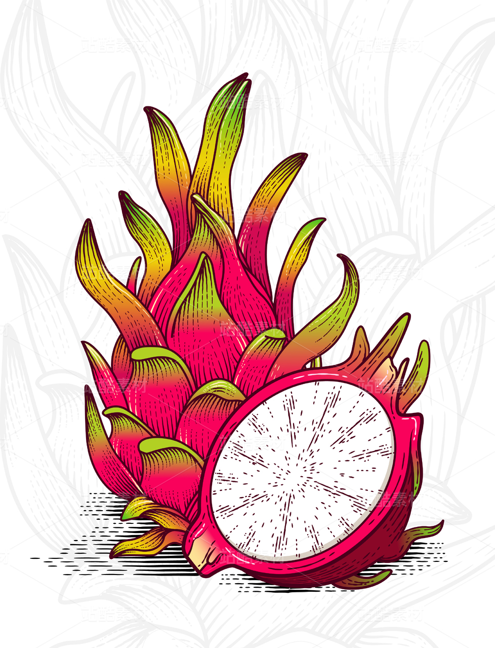 火龙果和小精灵的水果插画元素