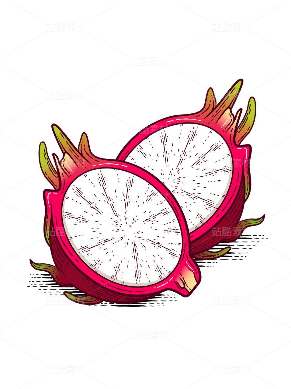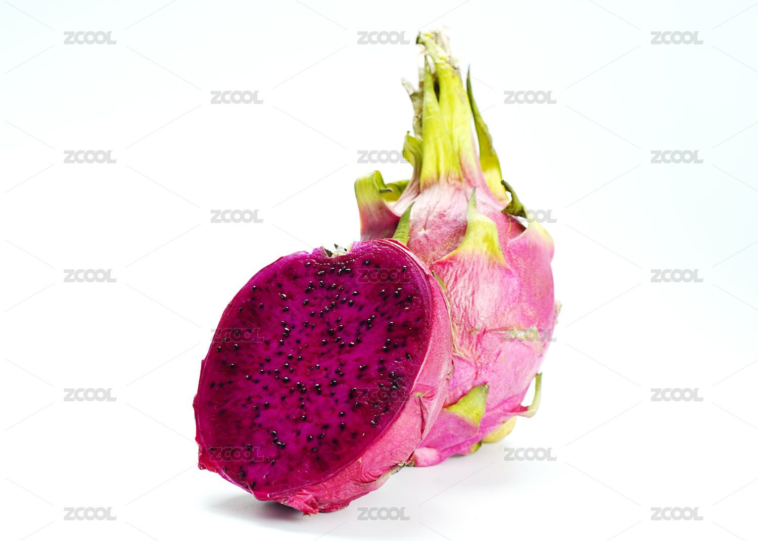 白色背景上摆放的新鲜水果火龙果