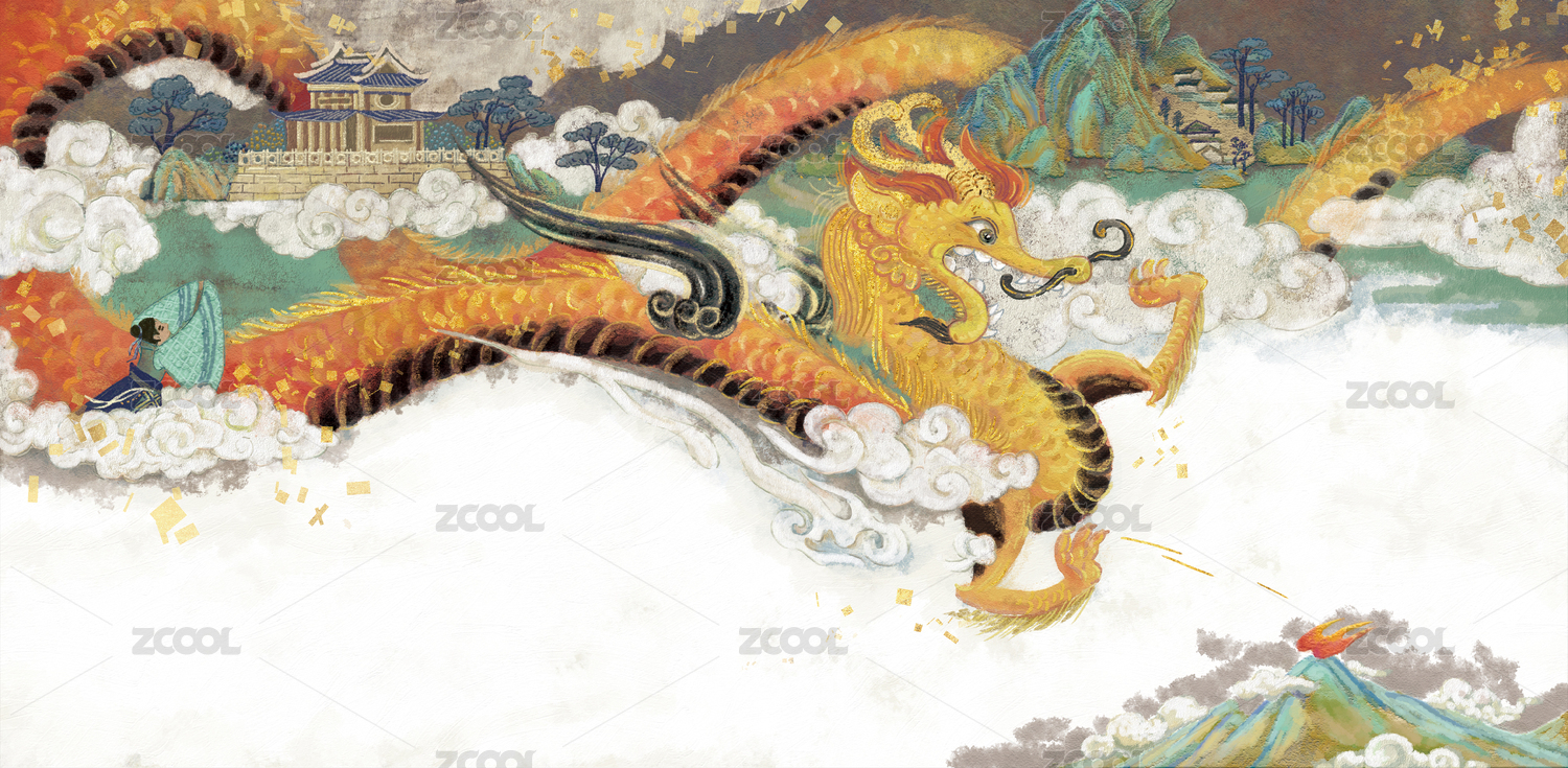 中国风火龙降临神州大地霸气插画