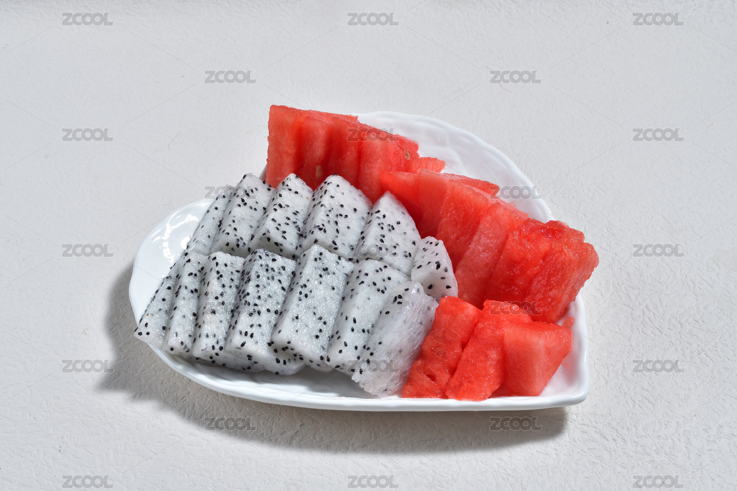 一碟新鲜的火龙果西瓜果切