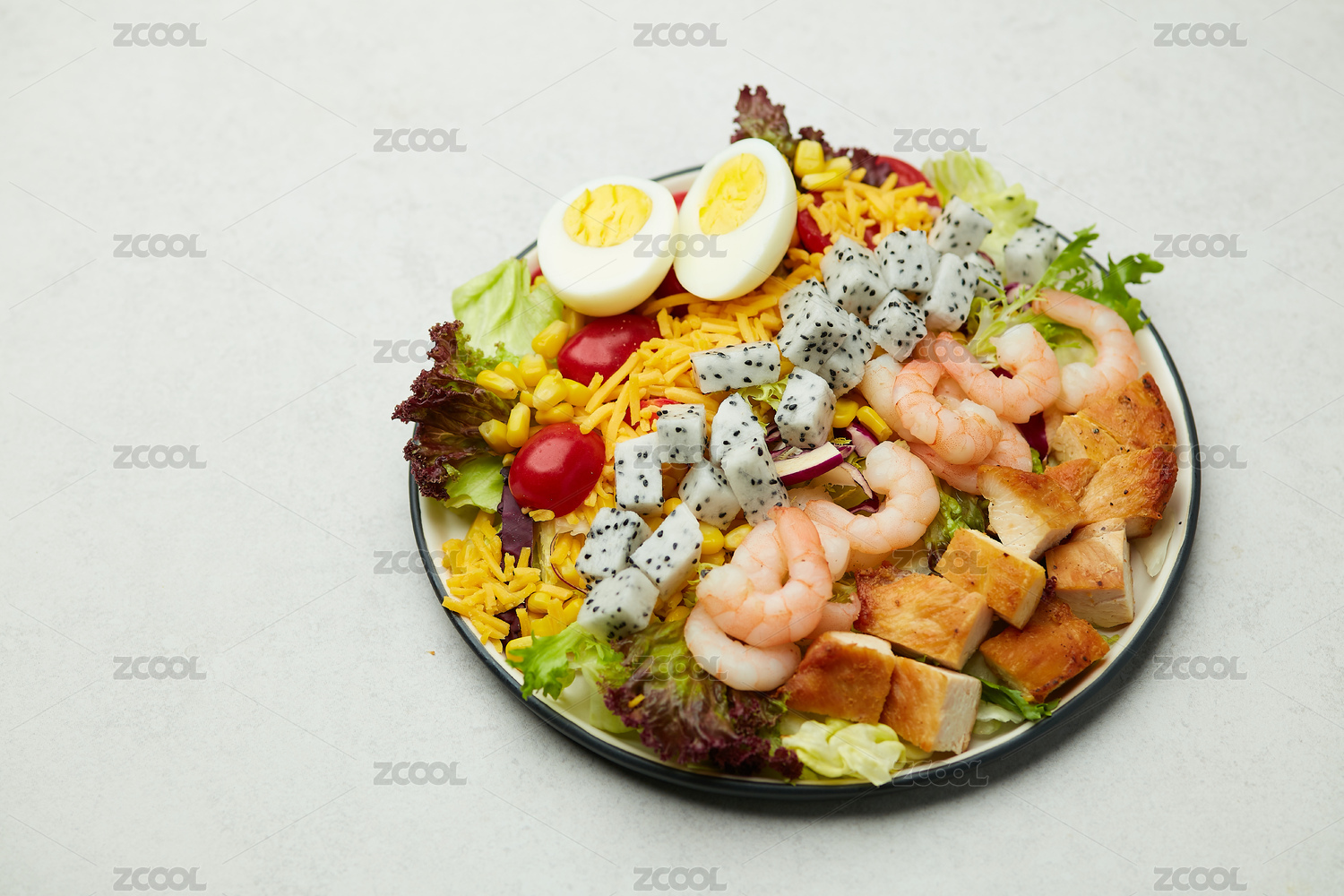 火龙果虾仁鸡肉粒沙拉