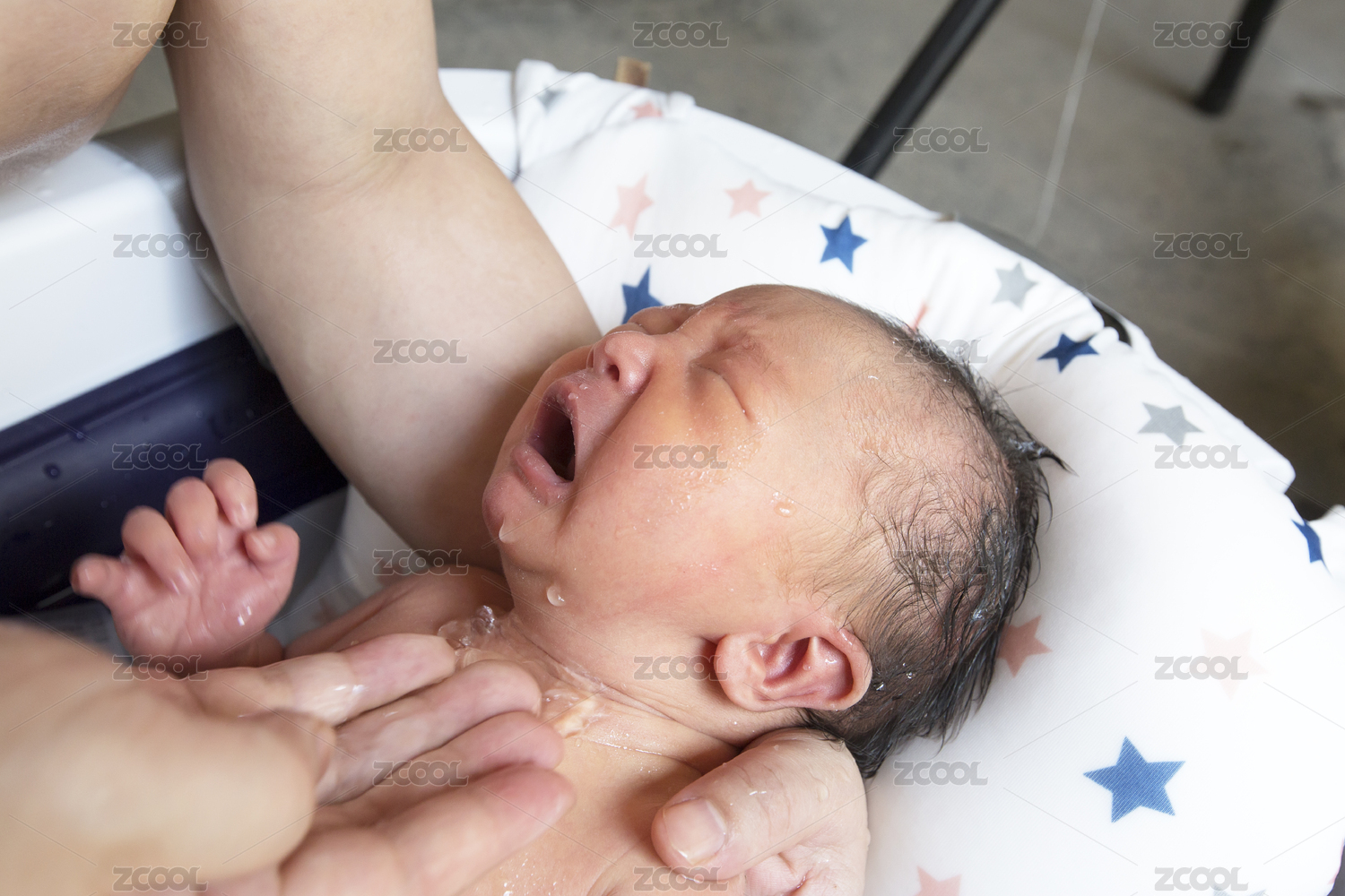 一个月新生儿洗澡时在哭泣