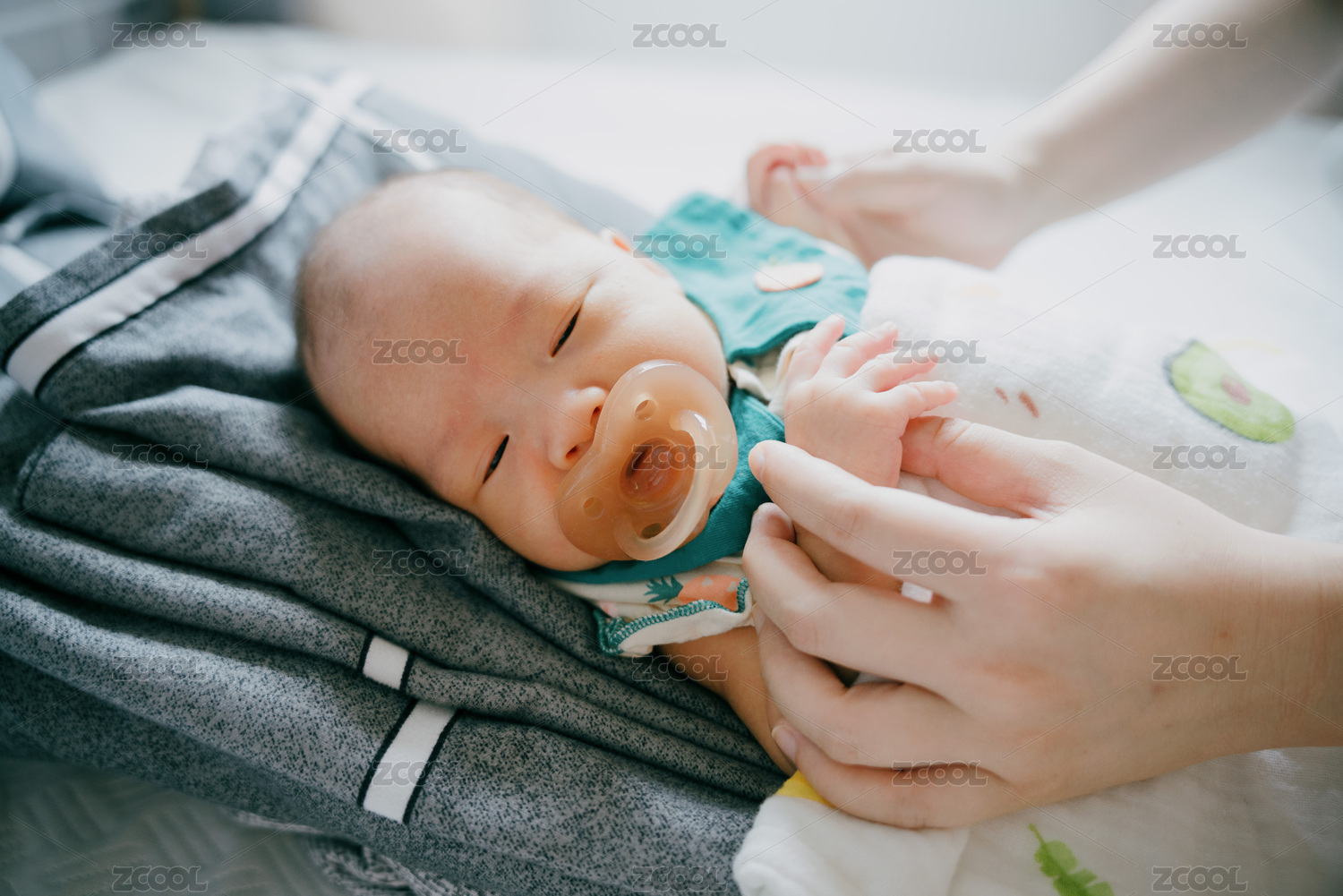 新生儿宝宝被拿着双手准备做被动操