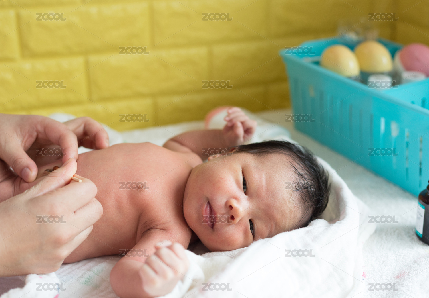 给新生儿清理消毒脐带