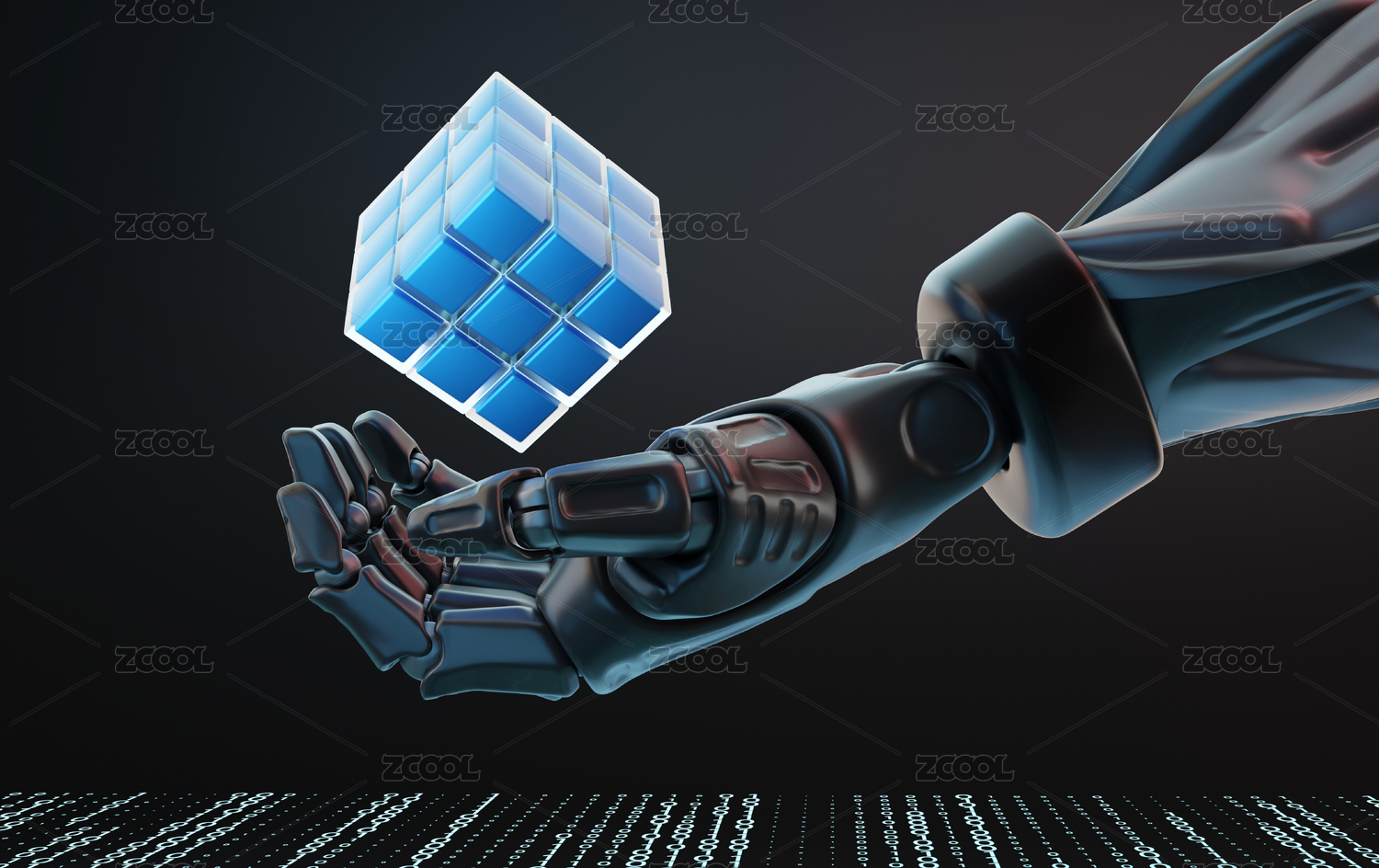 智能AI科技黑色场景机械手握魔方科幻朋克