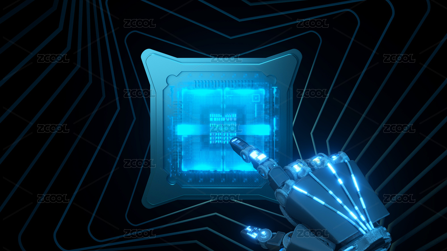 三维渲染的机械手点击高性能人工智能芯片