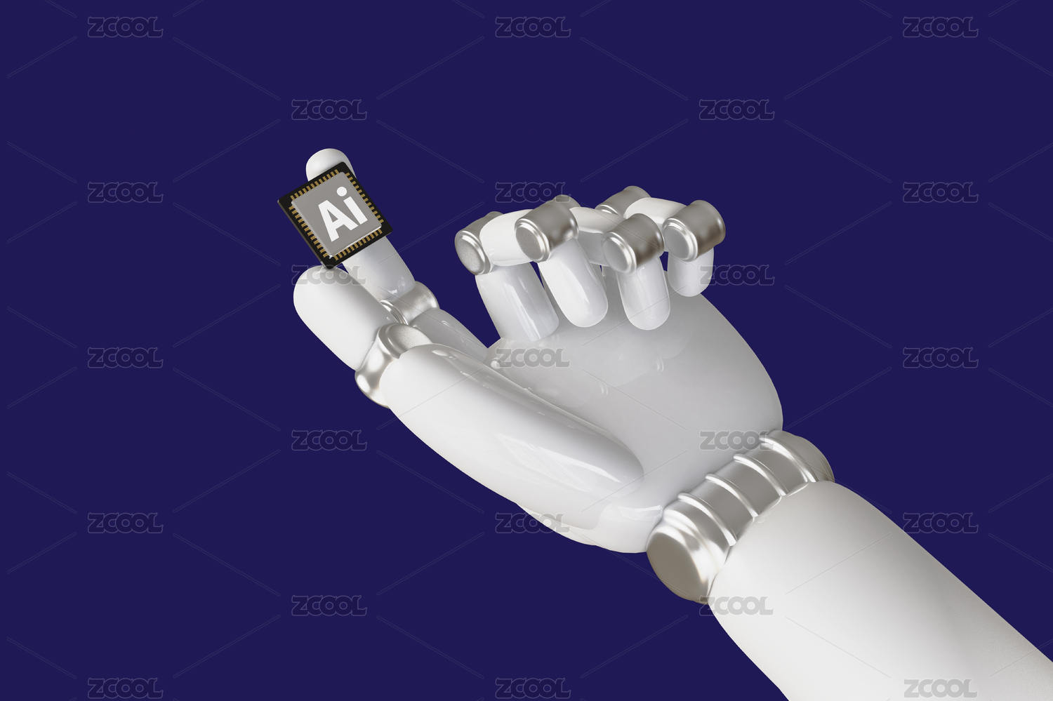 机械手拿着智能芯片科技三维插画