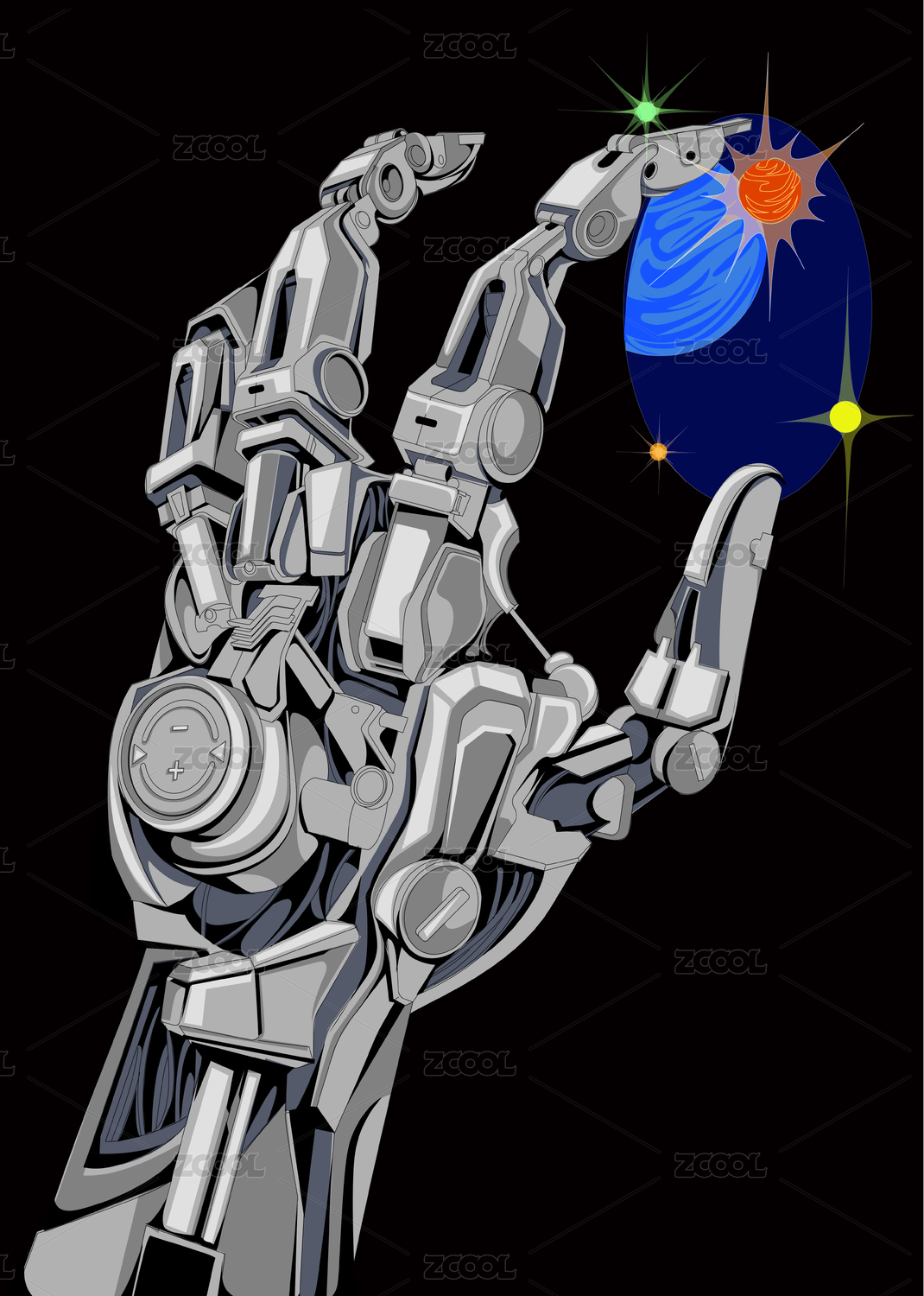 星球机械手插画