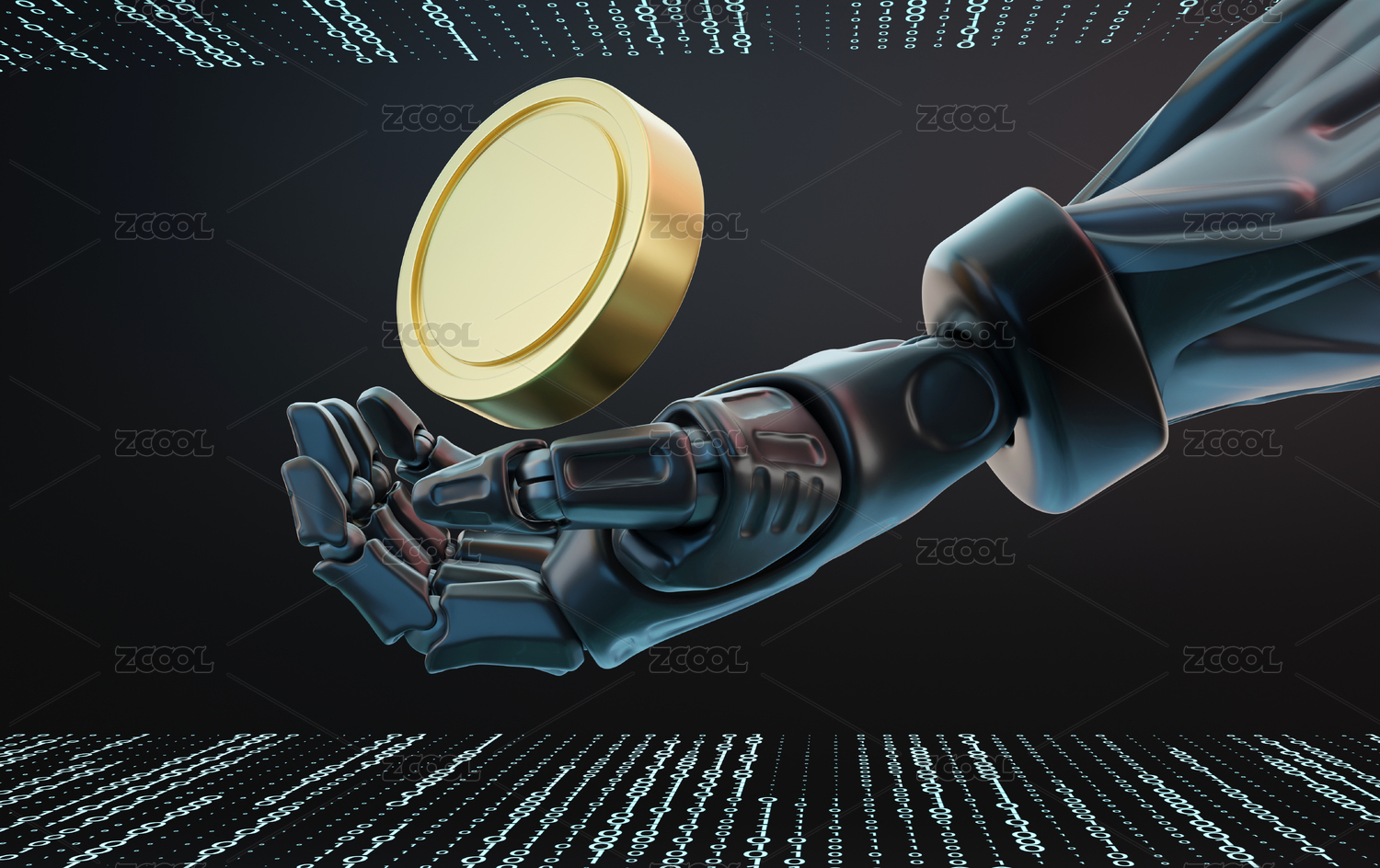 智能AI科技黑色场景机械手握金币科幻朋克