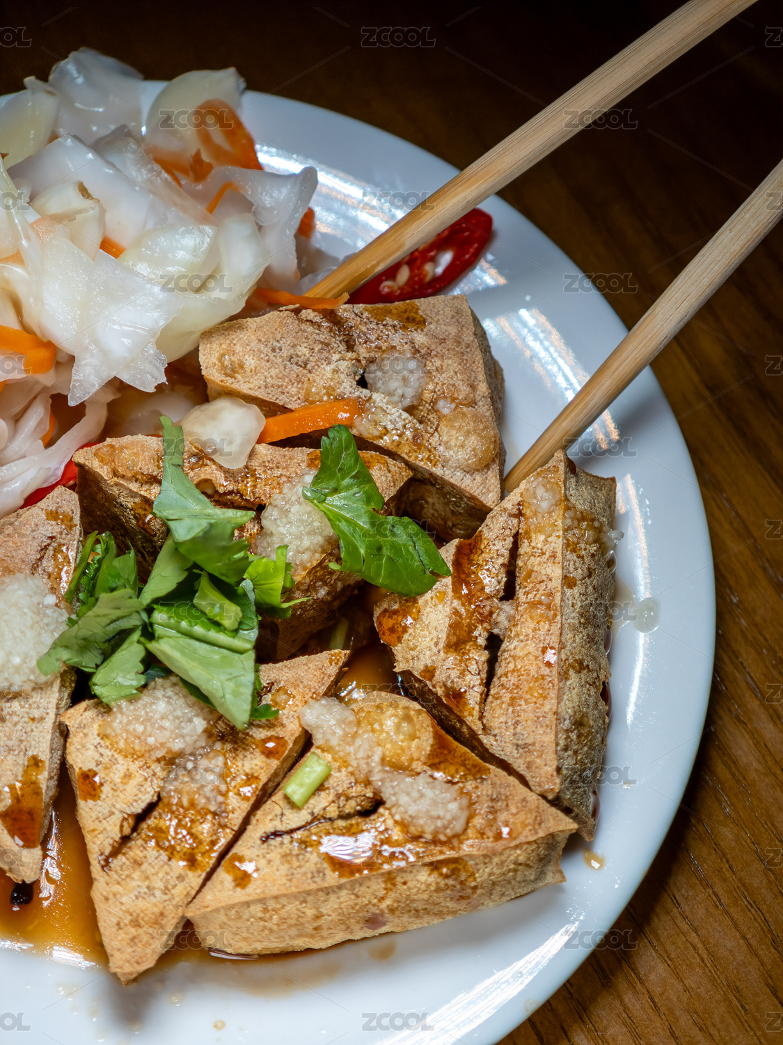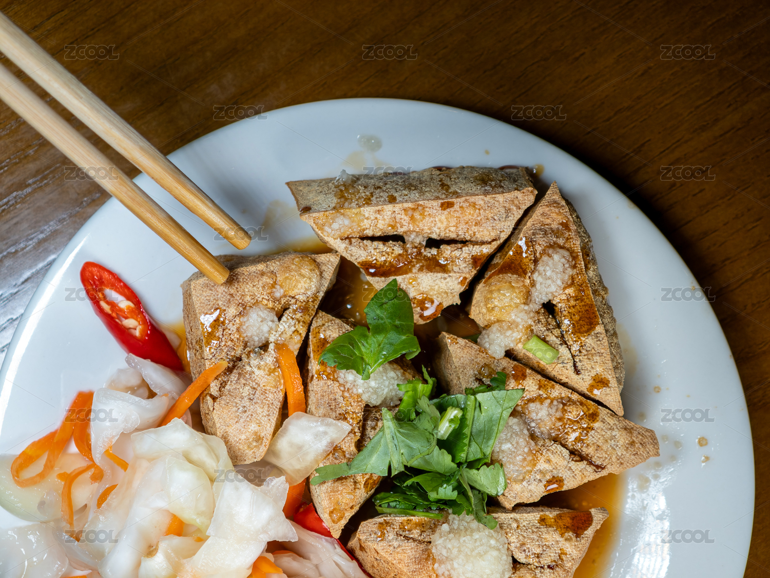 台湾传统特色小吃酥炸臭豆腐配台式泡菜