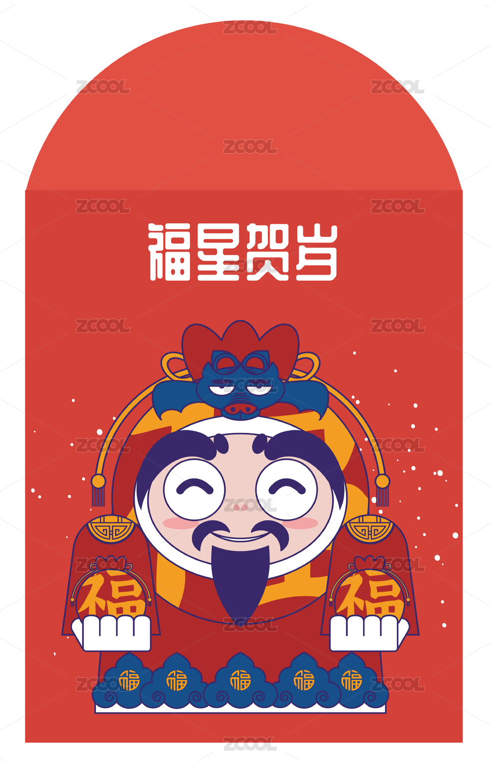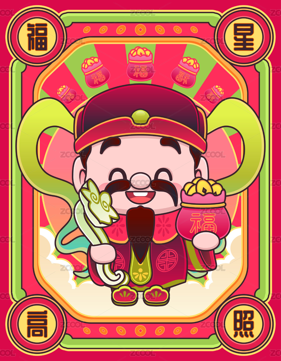 中国神仙福星国潮矢量插画