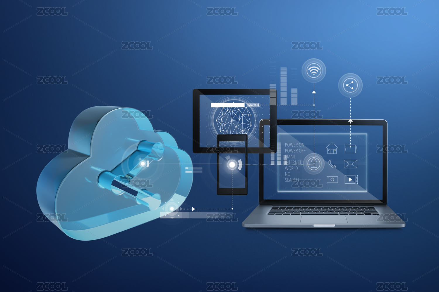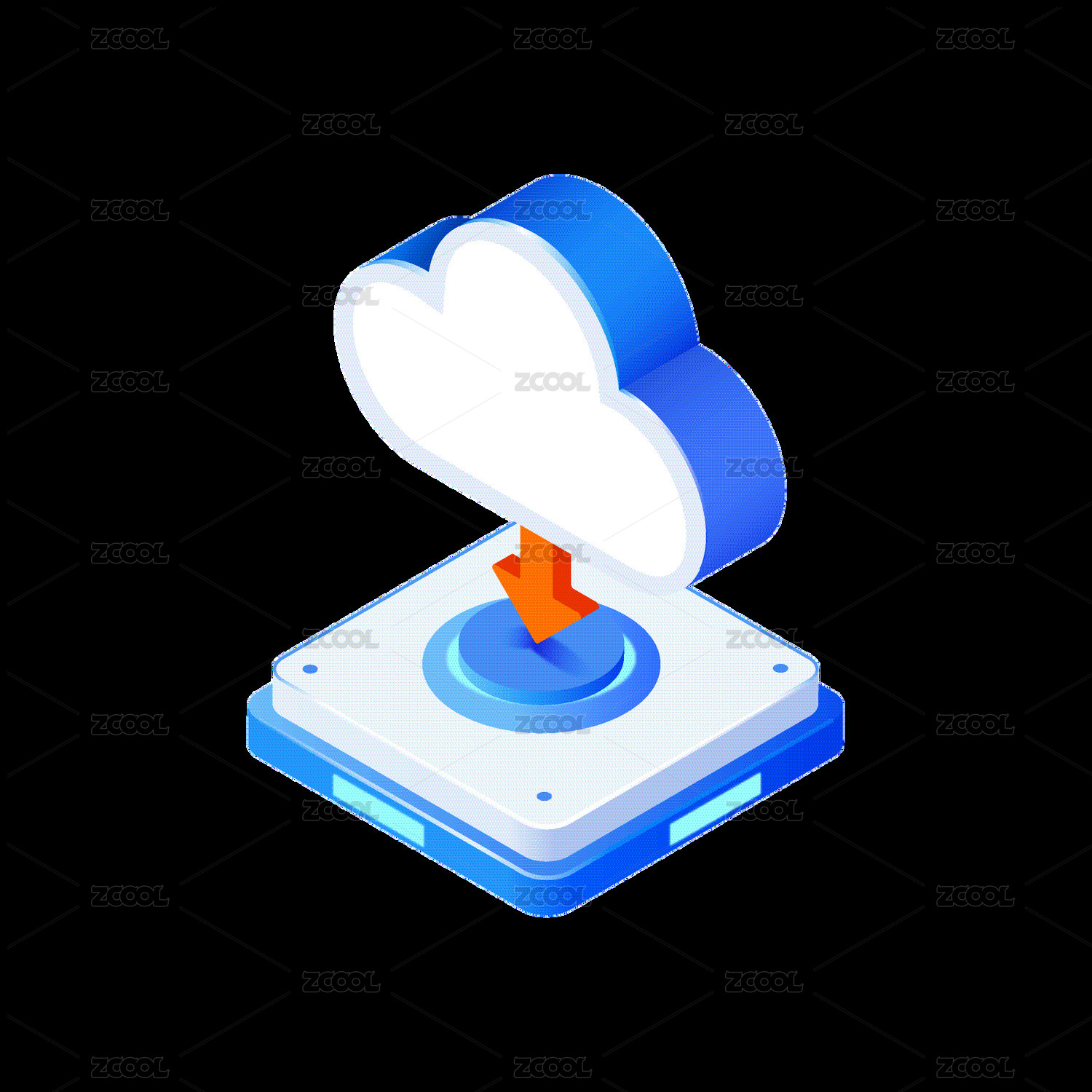 科技蓝透光网络云端文件下载智能概念图标