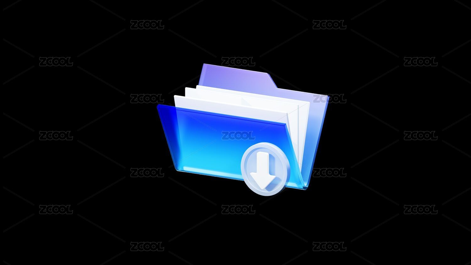 蓝白色下载本地透明磨砂玻璃B端3D图标