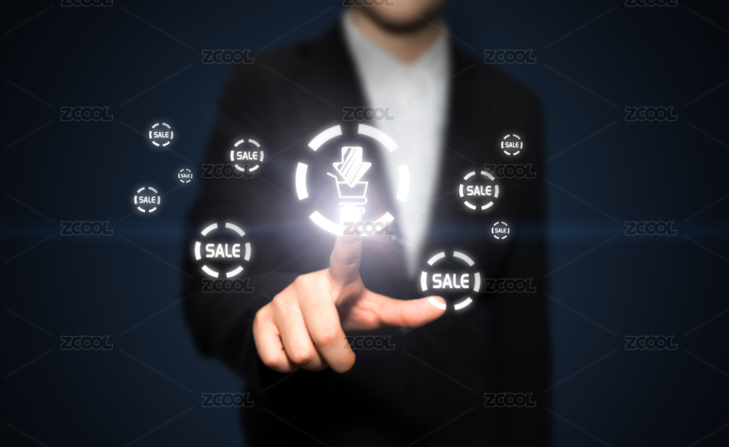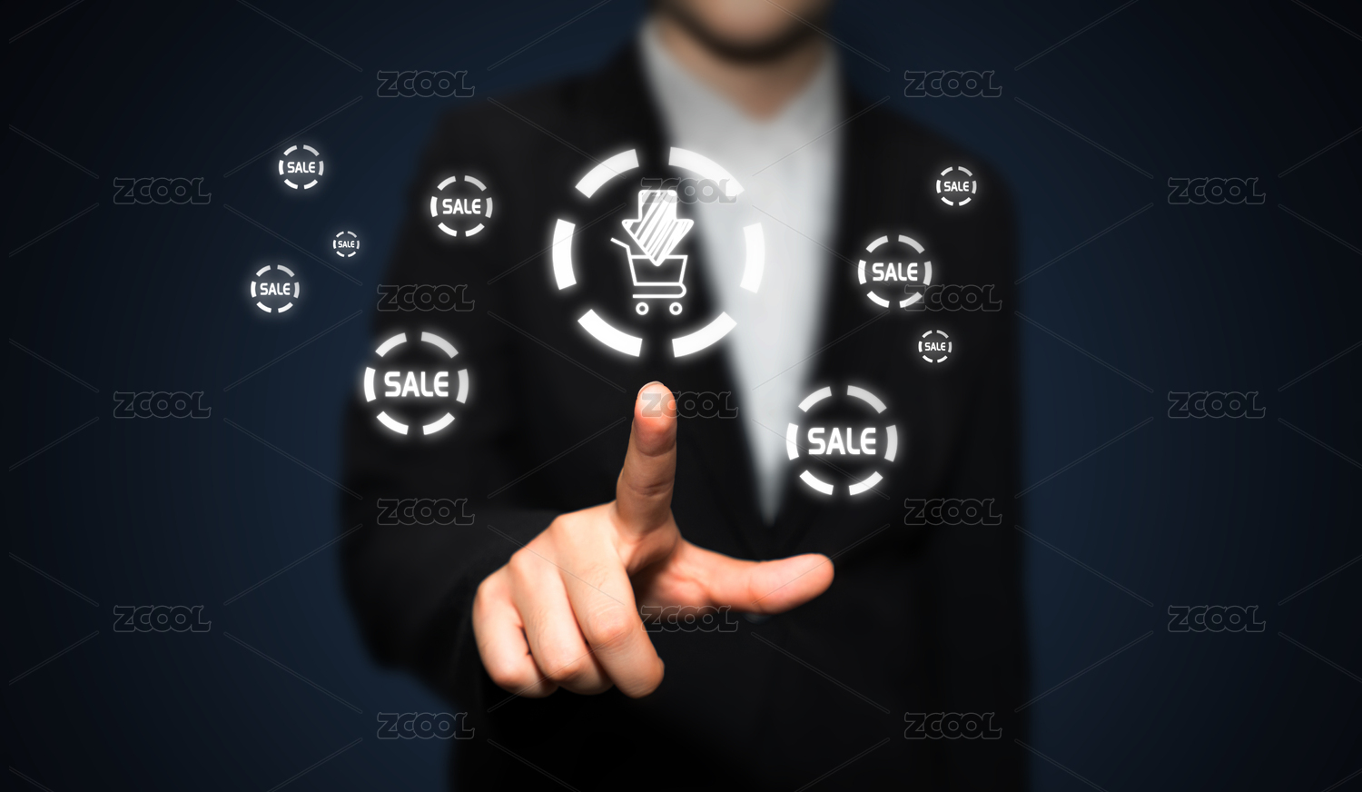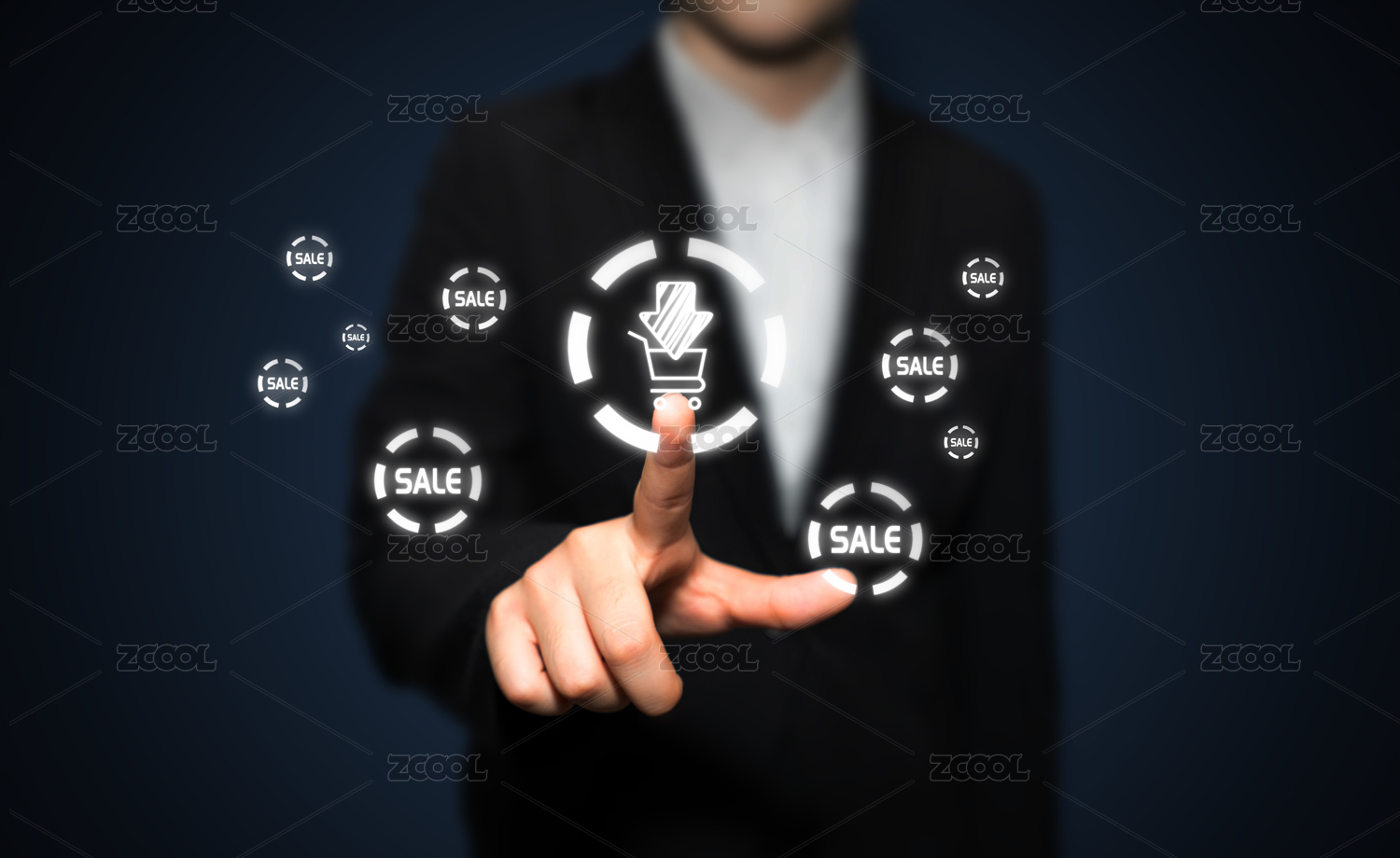商务人士手触控购物车进行下单下载订单在线移动支付的科技感概念