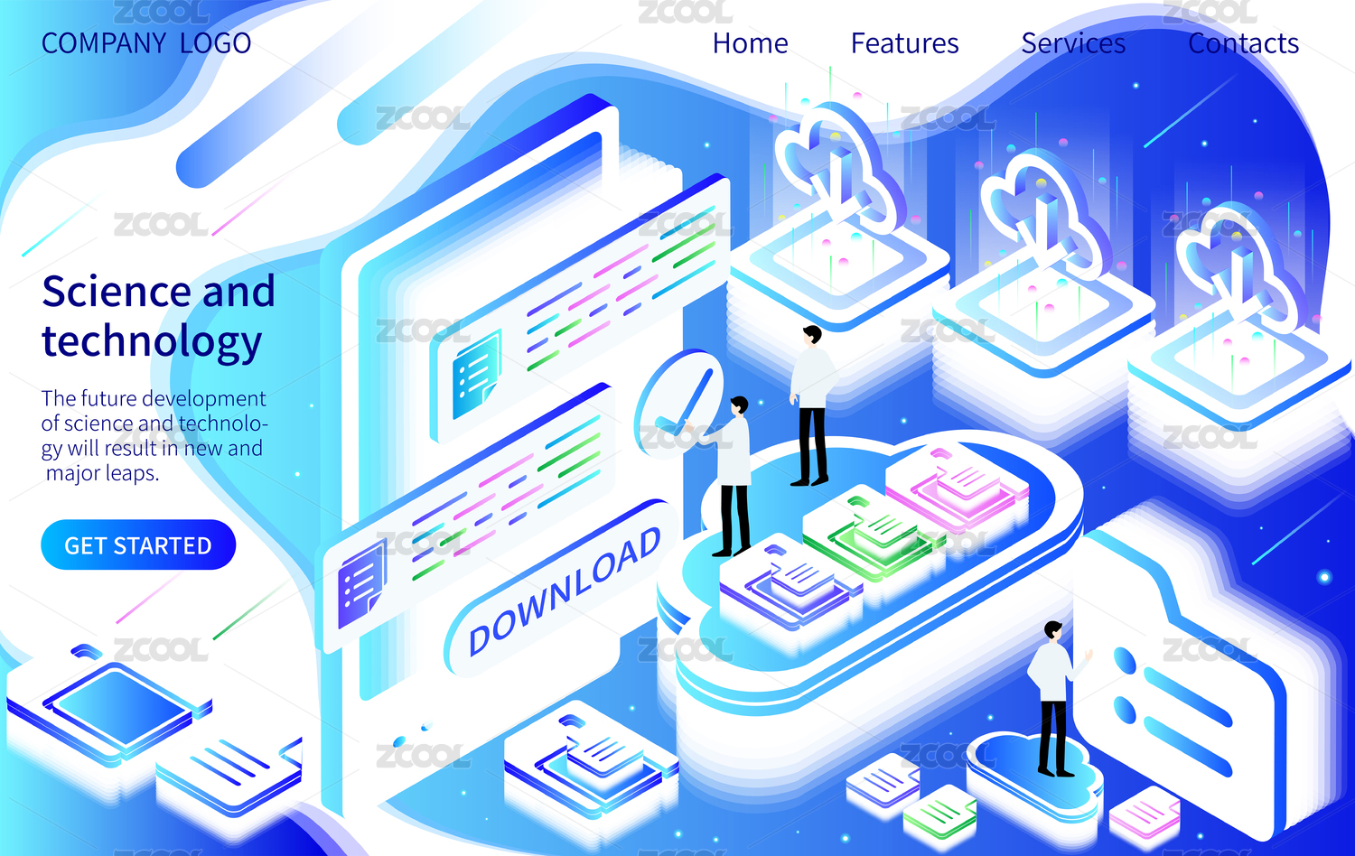云下载移动科技等距插画素材