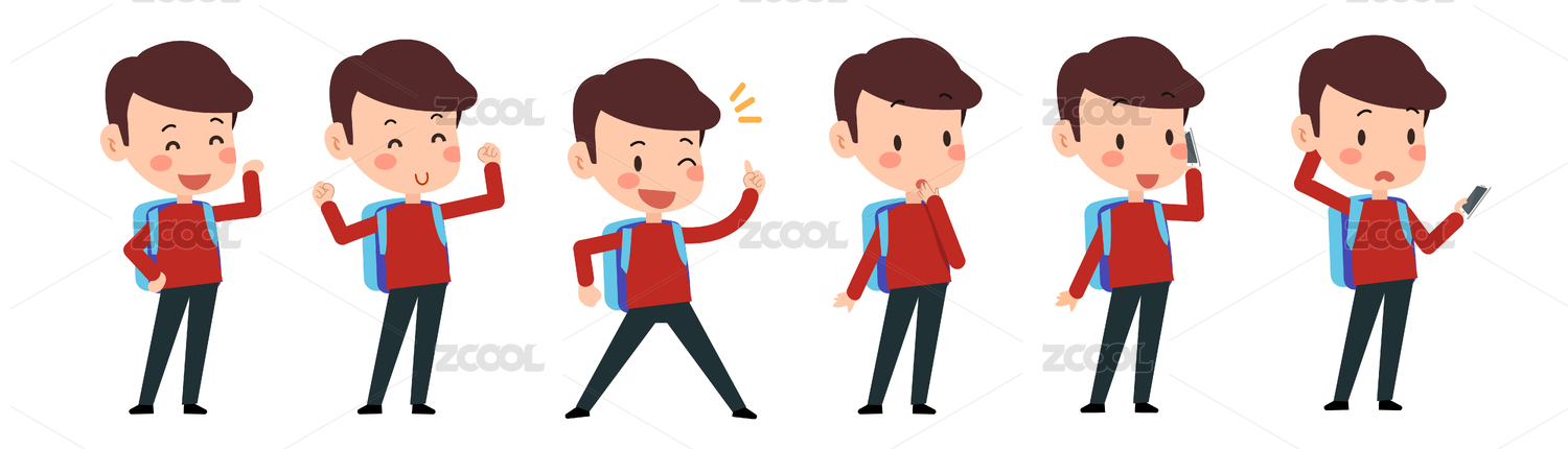 Dynamic Cartoon Vector Map of Cute Long Hair Girl with Backpack背书包可爱长发女孩动态卡通矢量图
