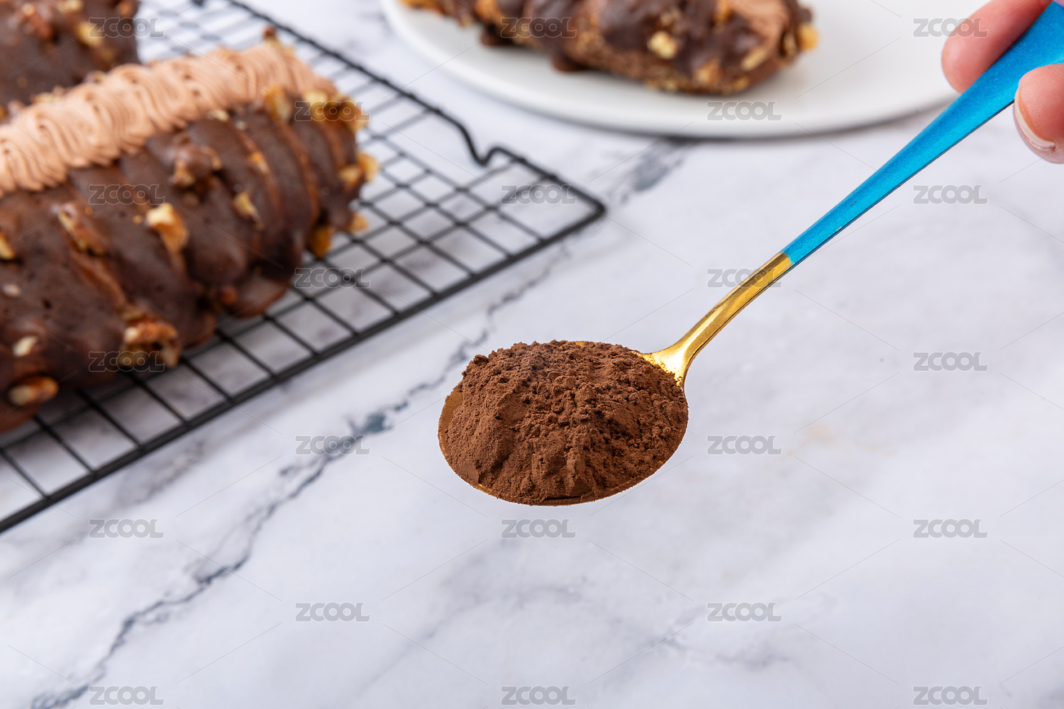 勺子上挖着可可粉
