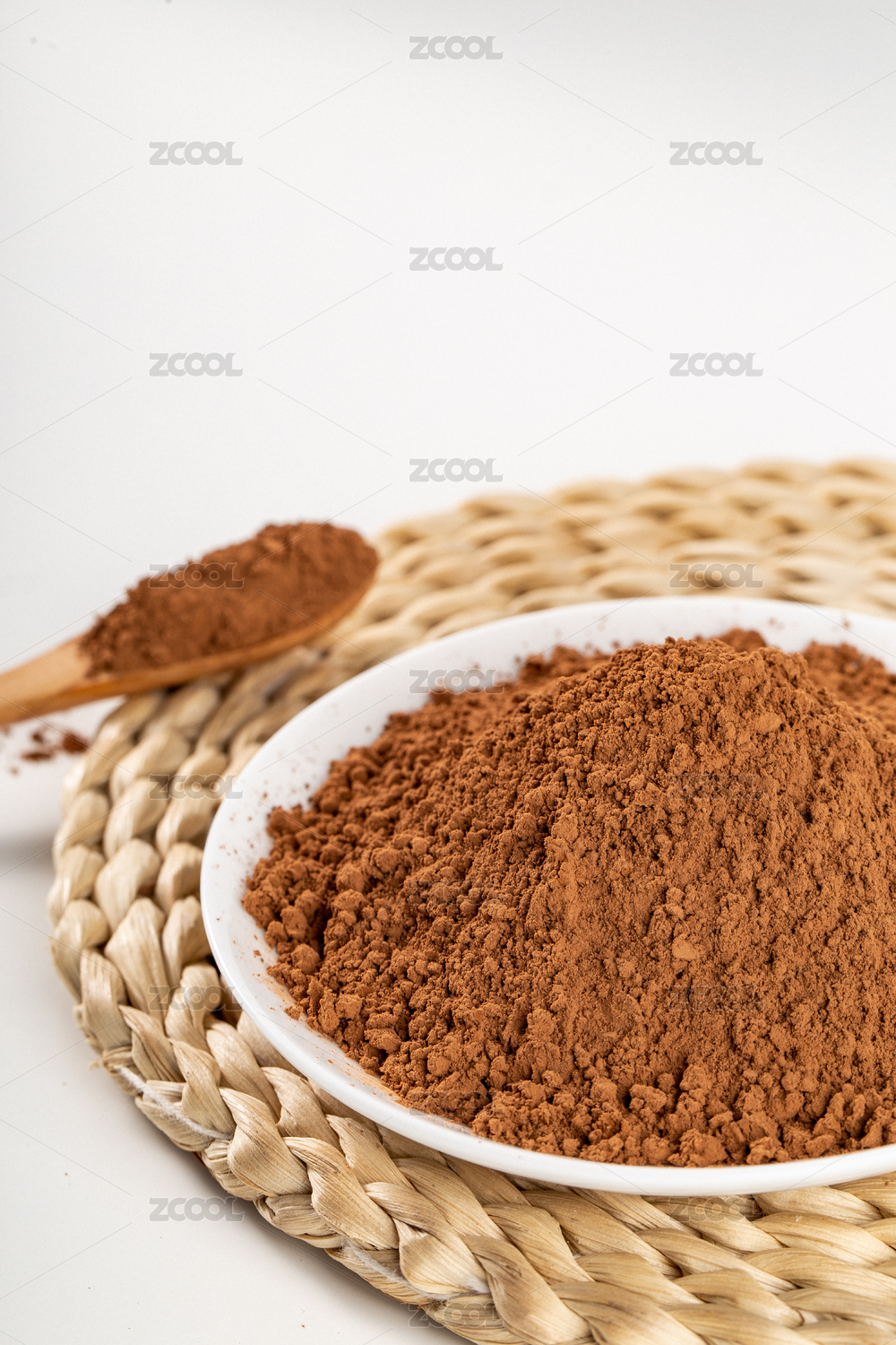 白色背景一盘烘焙食材可可粉