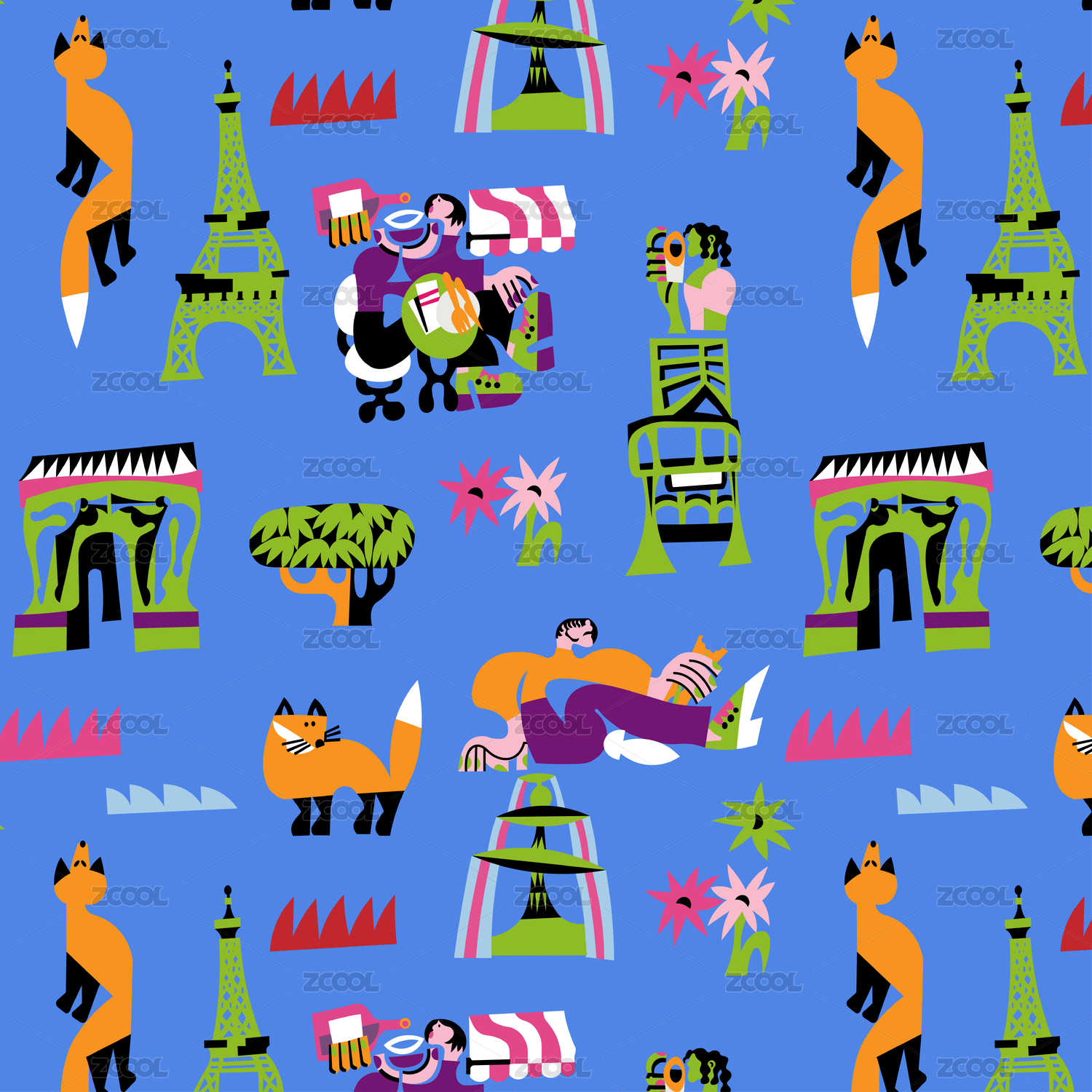 扁平风插画四方连续图案
